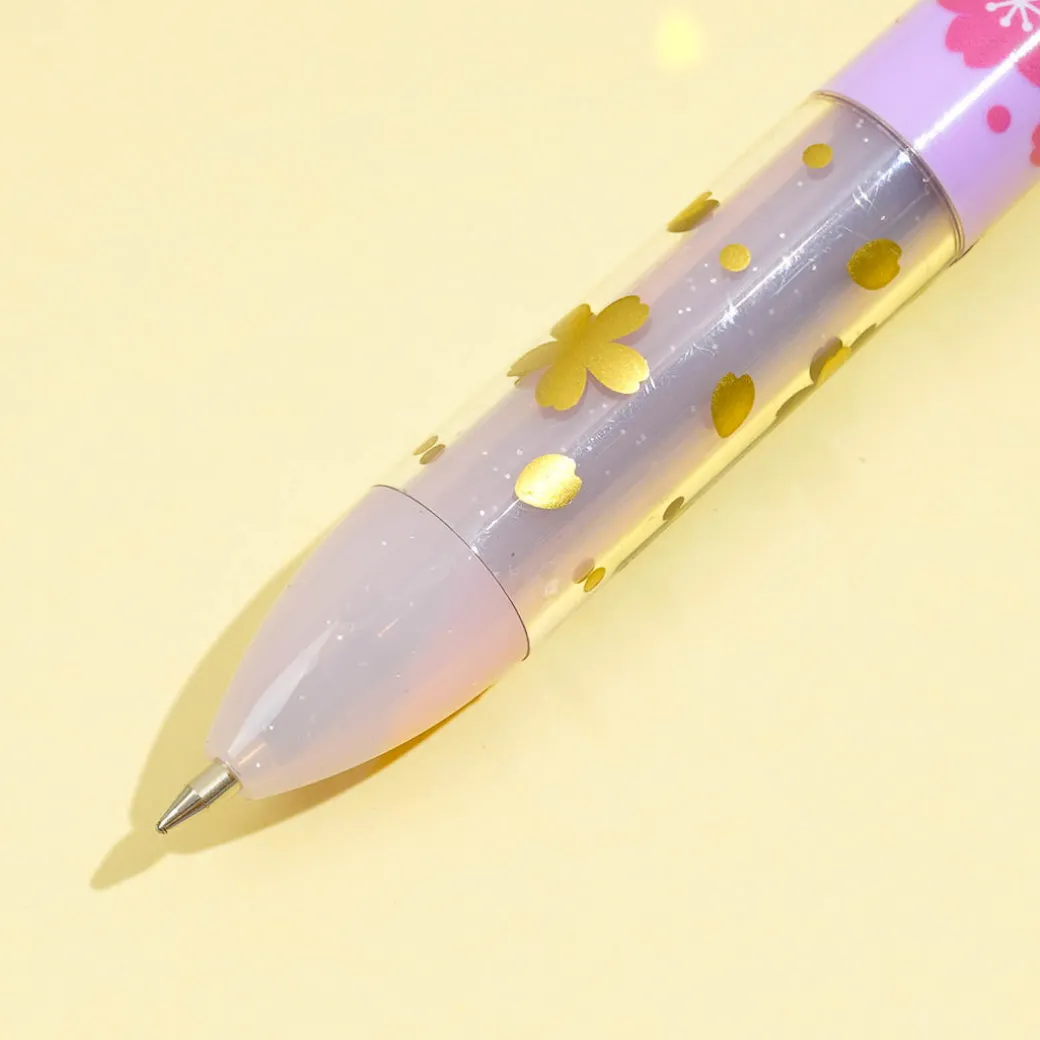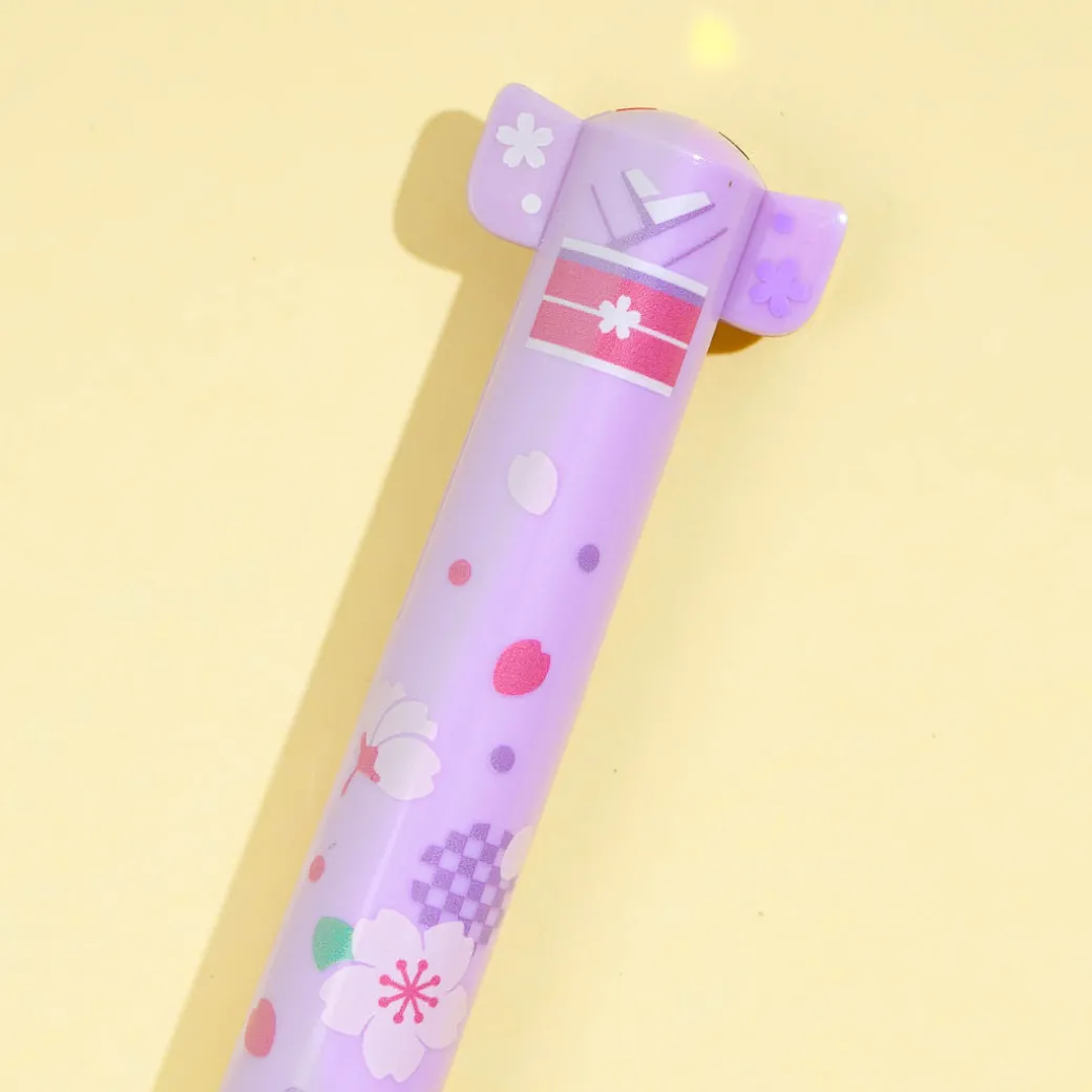 A mimi pen is a popular knock-type pen with two ink colors. This mimi gel pen looks like a floral kimono, with sleeves on the sides as the knocking part! Have fun writing your journal entries using this super cute pen.