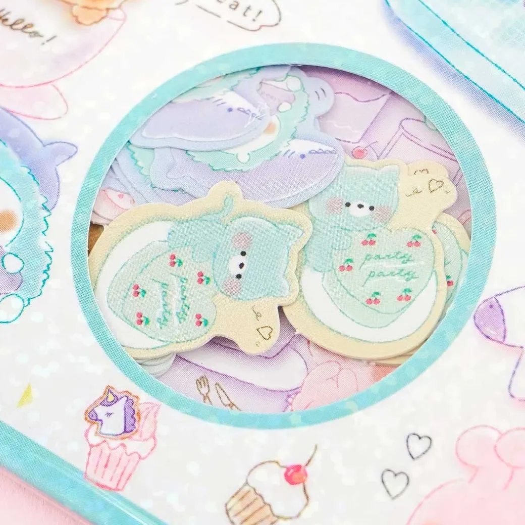 - A set of deco stickers with illustrations of fluffy bears having a party