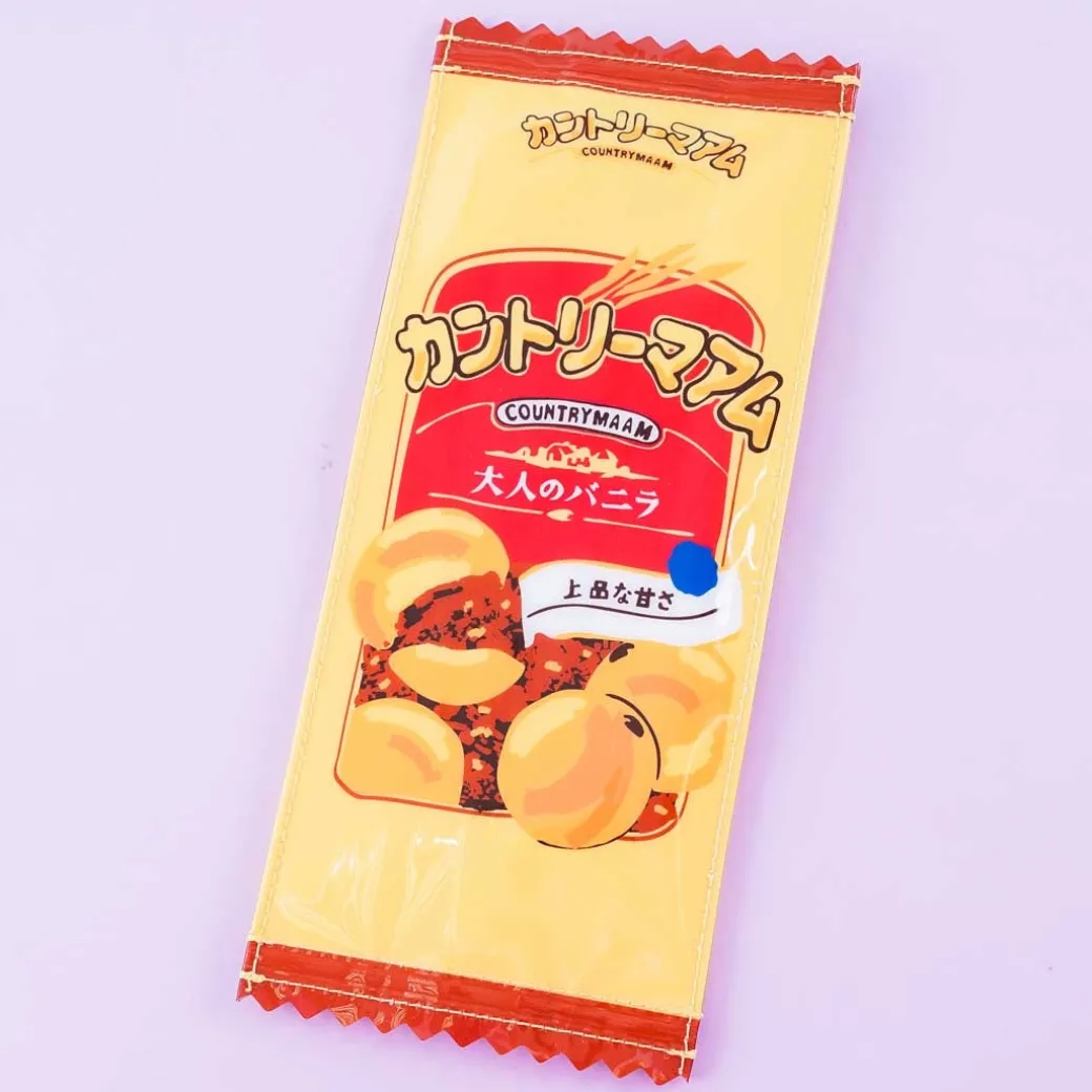 - A kawaii zippered pouch featuring a print of the packaging design of Fujiya Country Maam cookies