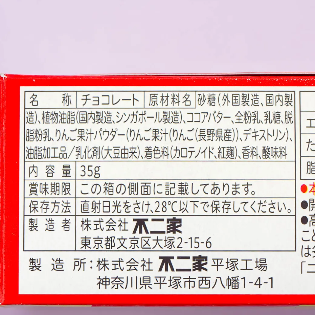 Reward yourself with a delicious treat after a busy day! These heart-shaped chocolates have a unique white and red marble pattern. The box contains three special Japanese apple flavors — Akiei, Shinano Sweet, and Shinano Gold.