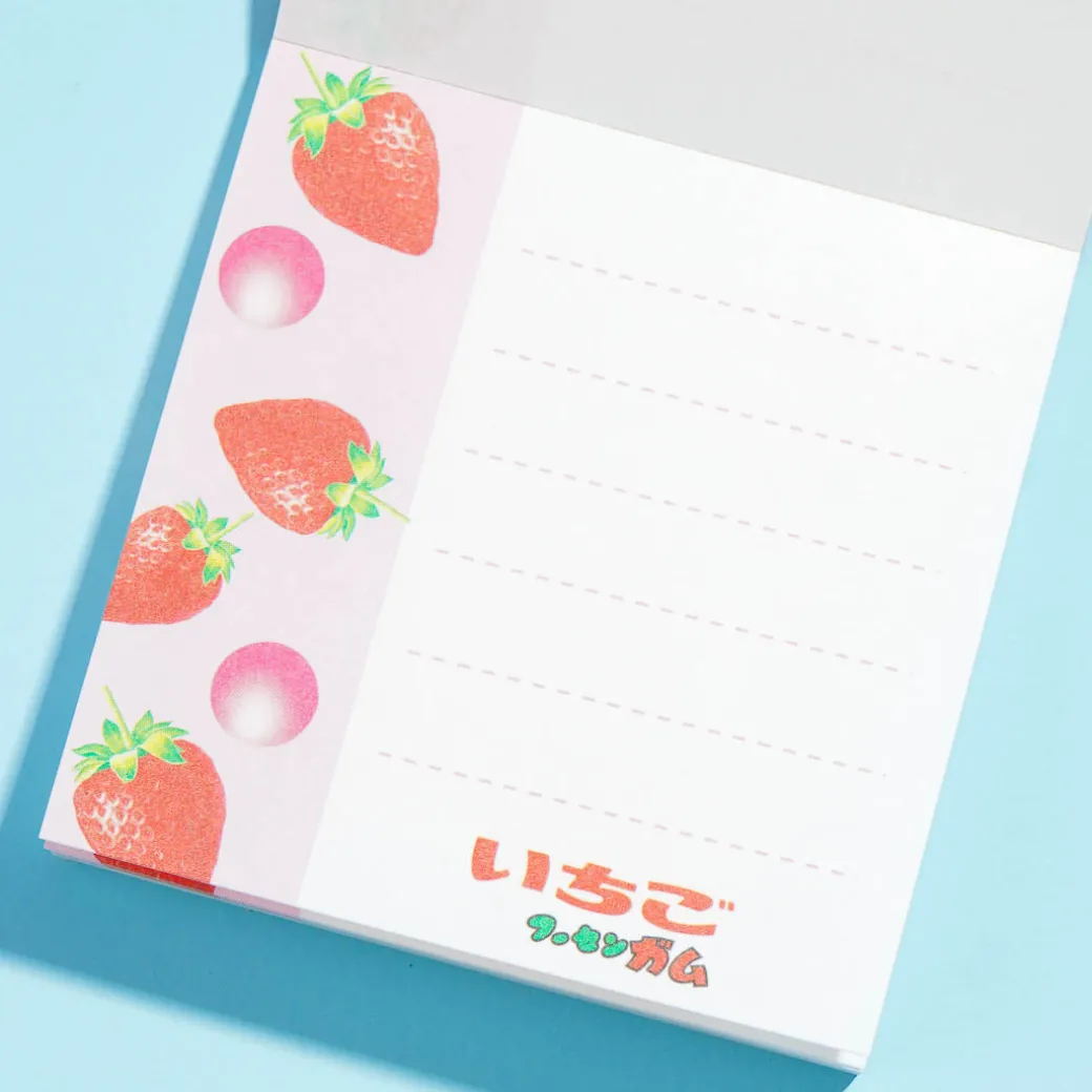 Write your important reminders on this super cute memo pad! It features cute prints of strawberries that are inspired by strawberry-flavored Fusen Gum.