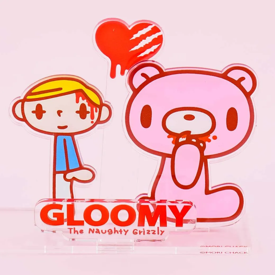 - A die-cut Gloomy Bear acrylic stand with illustrations of Piti-kun and Guru-mi with a heart