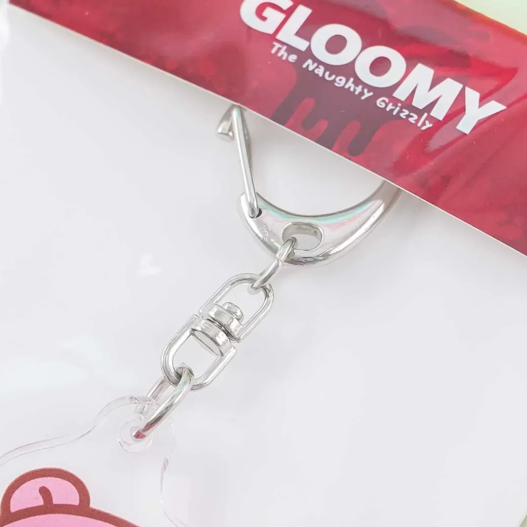 - A super cute acrylic charm featuring a print of Gloomy Bear with a bird on its nose