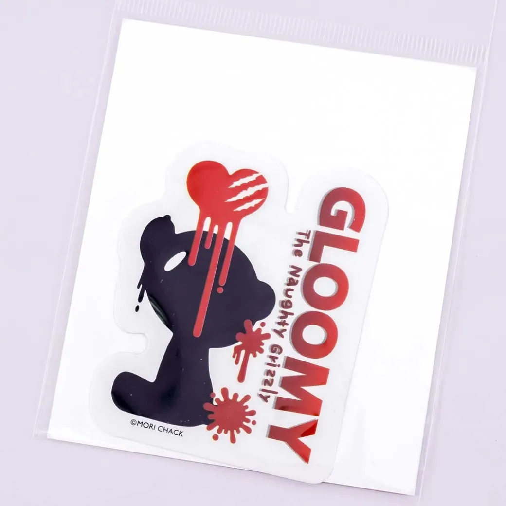 - A kawaii Gloomy Bear deco sticker featuring Guru-mi’s silhouette, blood splatters, and a heart