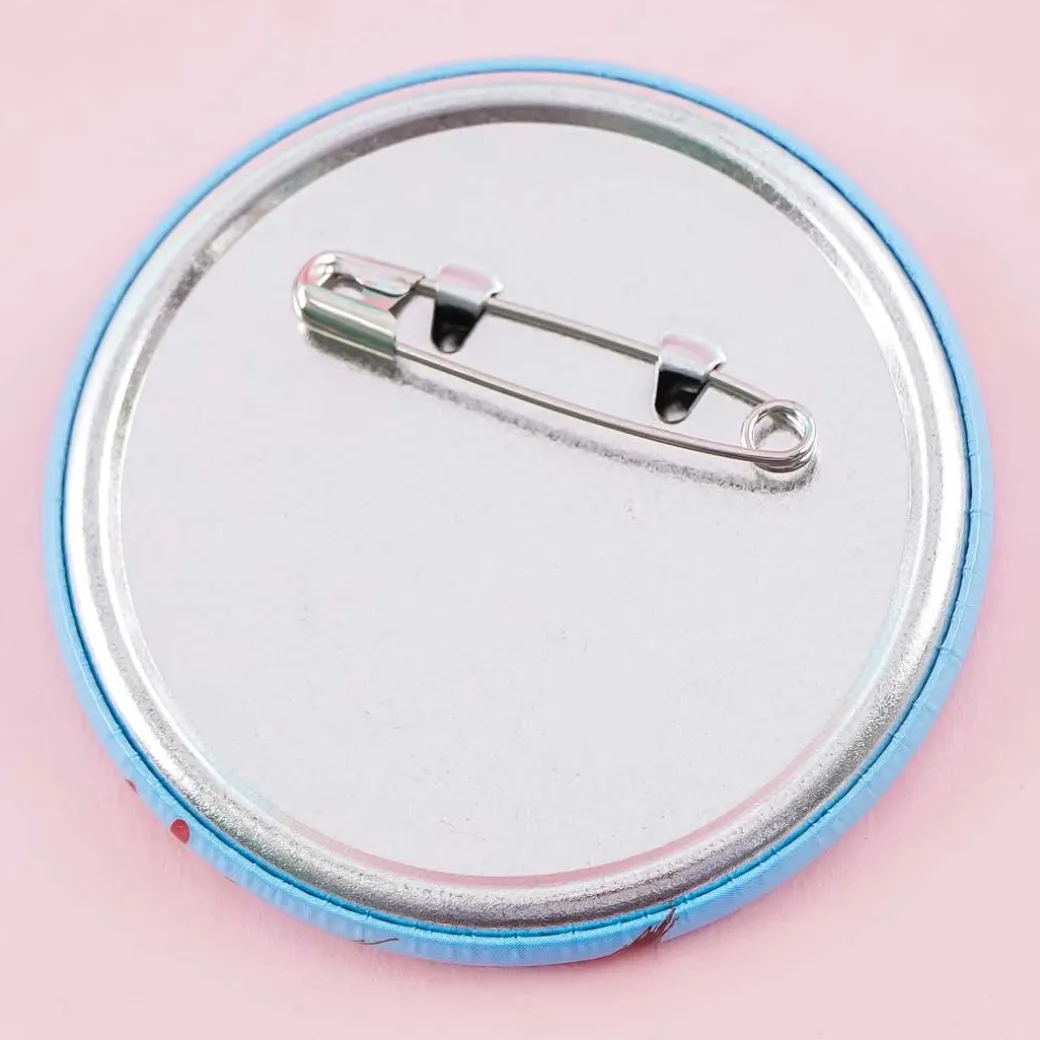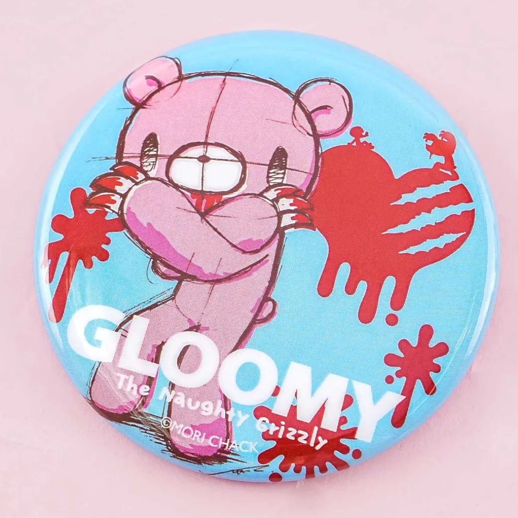 - A cute badge featuring a print of a Gloomy Bear and a bloody heart