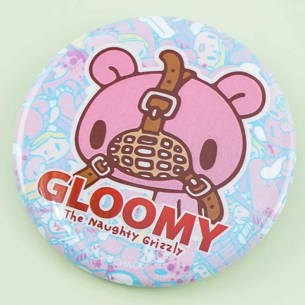 - A super cute badge featuring a print of a Gloomy Bear wearing a mask