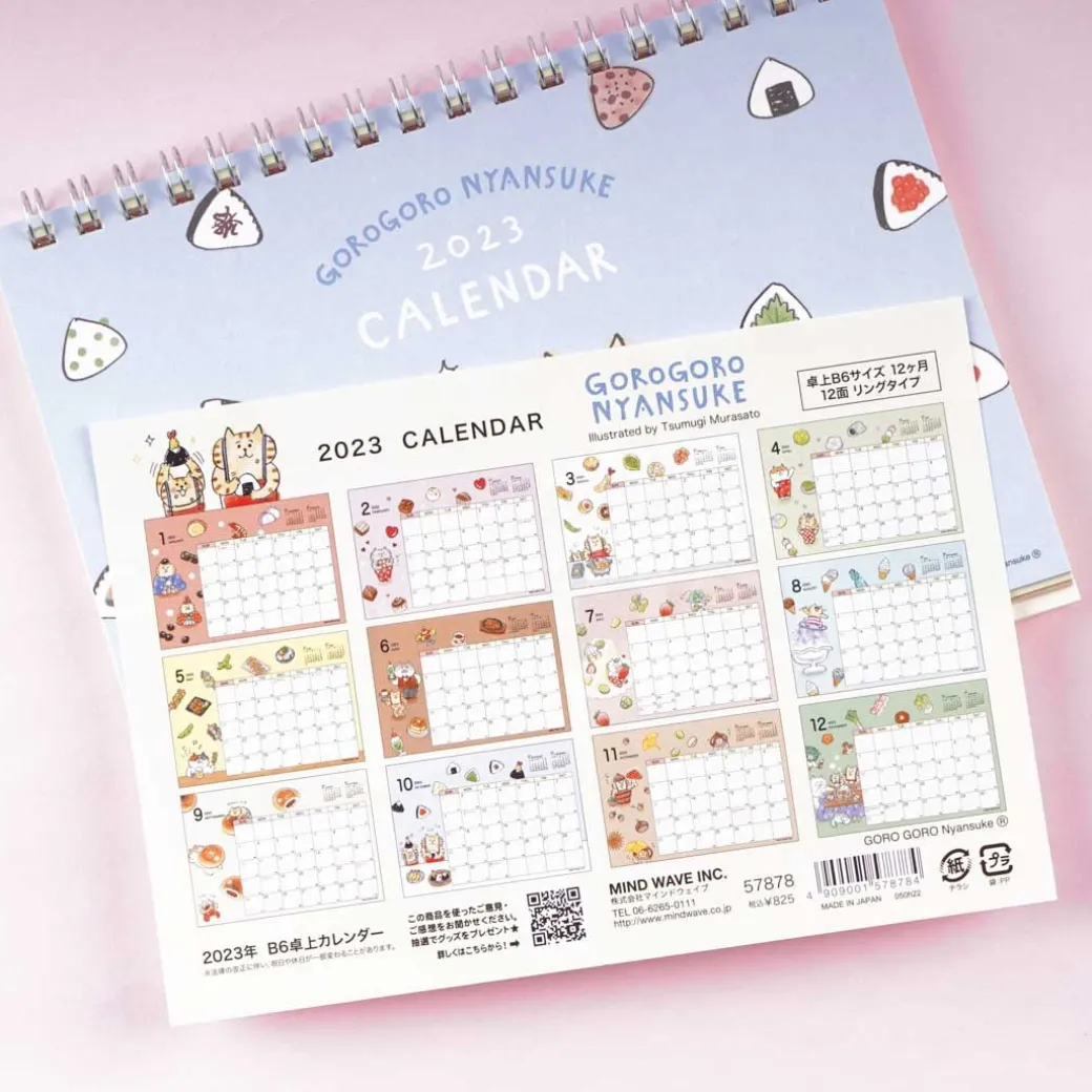 - A super cute B6-sized desktop calendar featuring prints of Gorogoro Nyansuke characters eating together