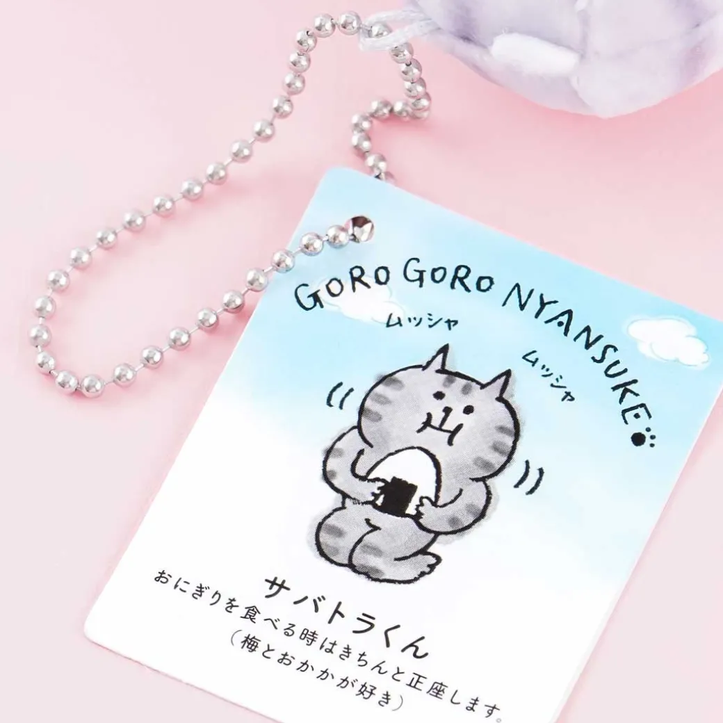 - A kawaii mini-sized cat plushie charm from the Gorogoro Nyansuke series eating a rice ball