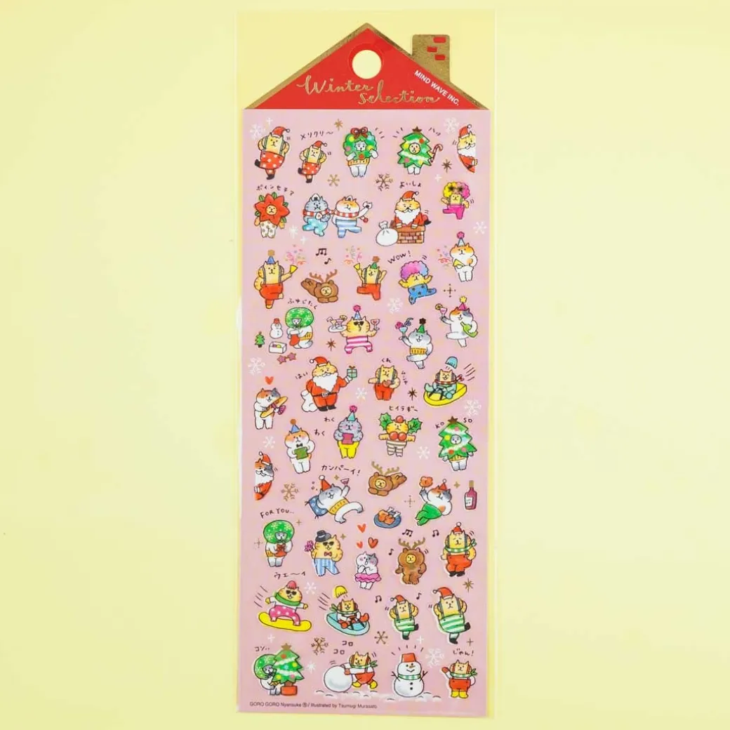- A super kawaii sheet of die-cut stickers with golden details decorated with prints of Gorogoro Nyansuke characters having fun during Christmas