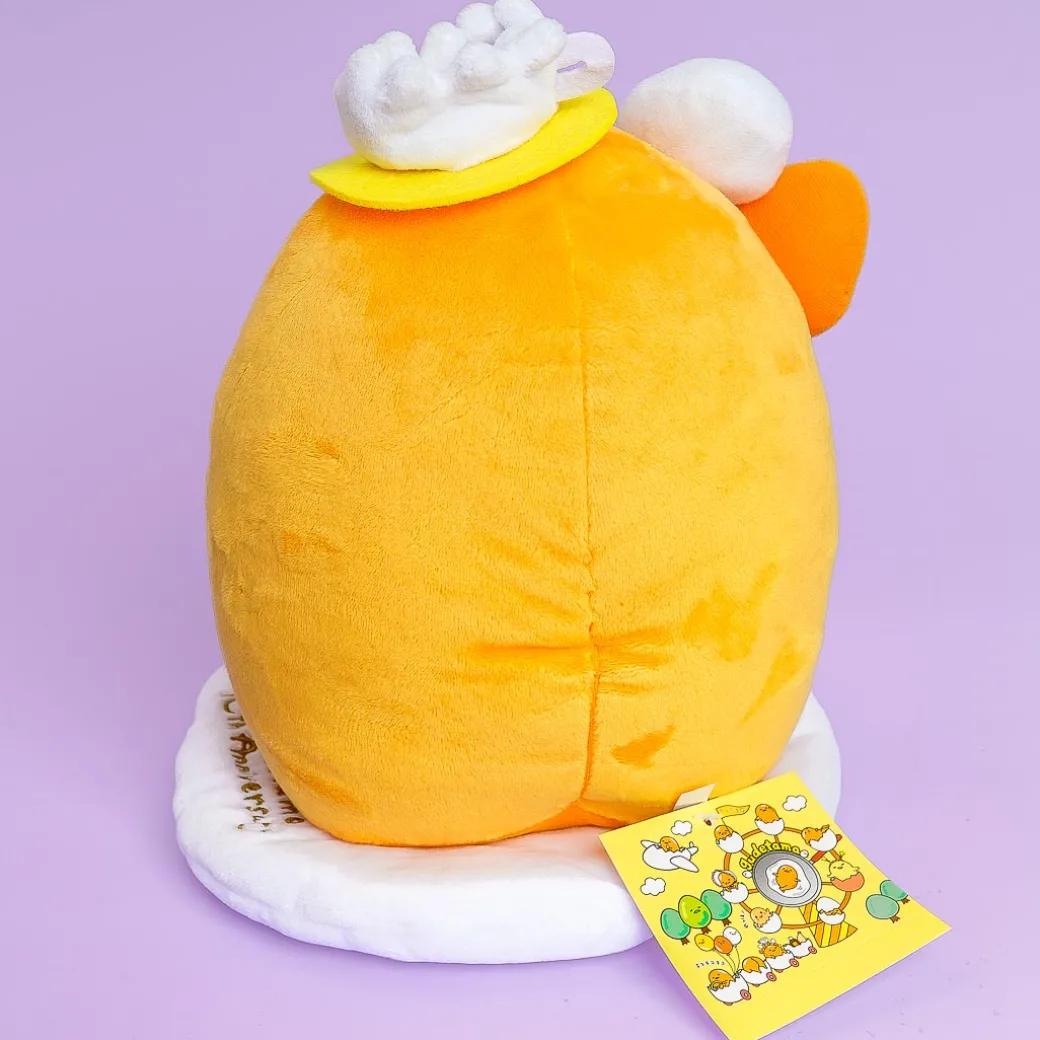 This super cute Gudetama plushie is having fun at Gudetama Land! It’s holding two fluffy balloons and has an eggshell teacup for a hat. Place this upright on your desk to add a touch of cuteness to your room!
