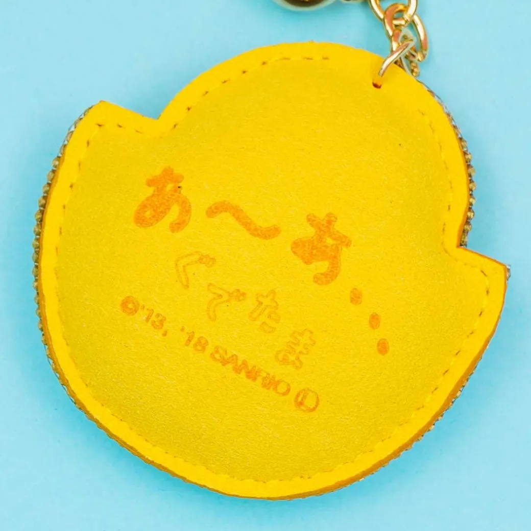 - A cute Gudetama keychain made of sparkly rhinestones decorated on leather