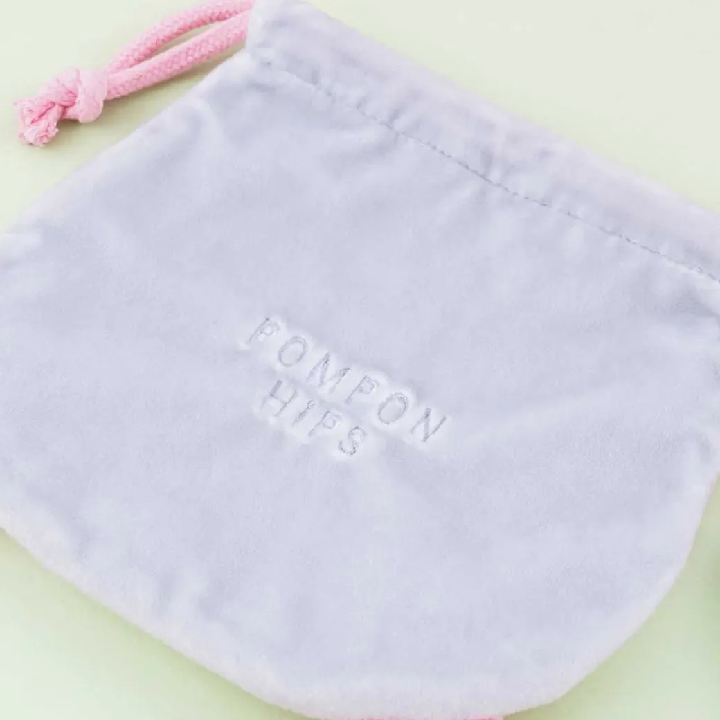 - A cute drawstring pouch designed to look like a hamster butt