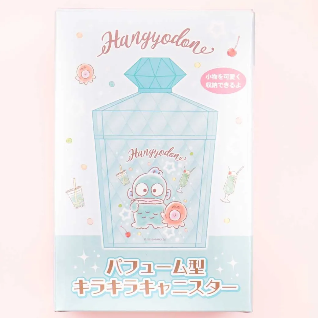 - A kawaii perfume bottle-shaped canister decorated with Hangyodon and cafe drinks