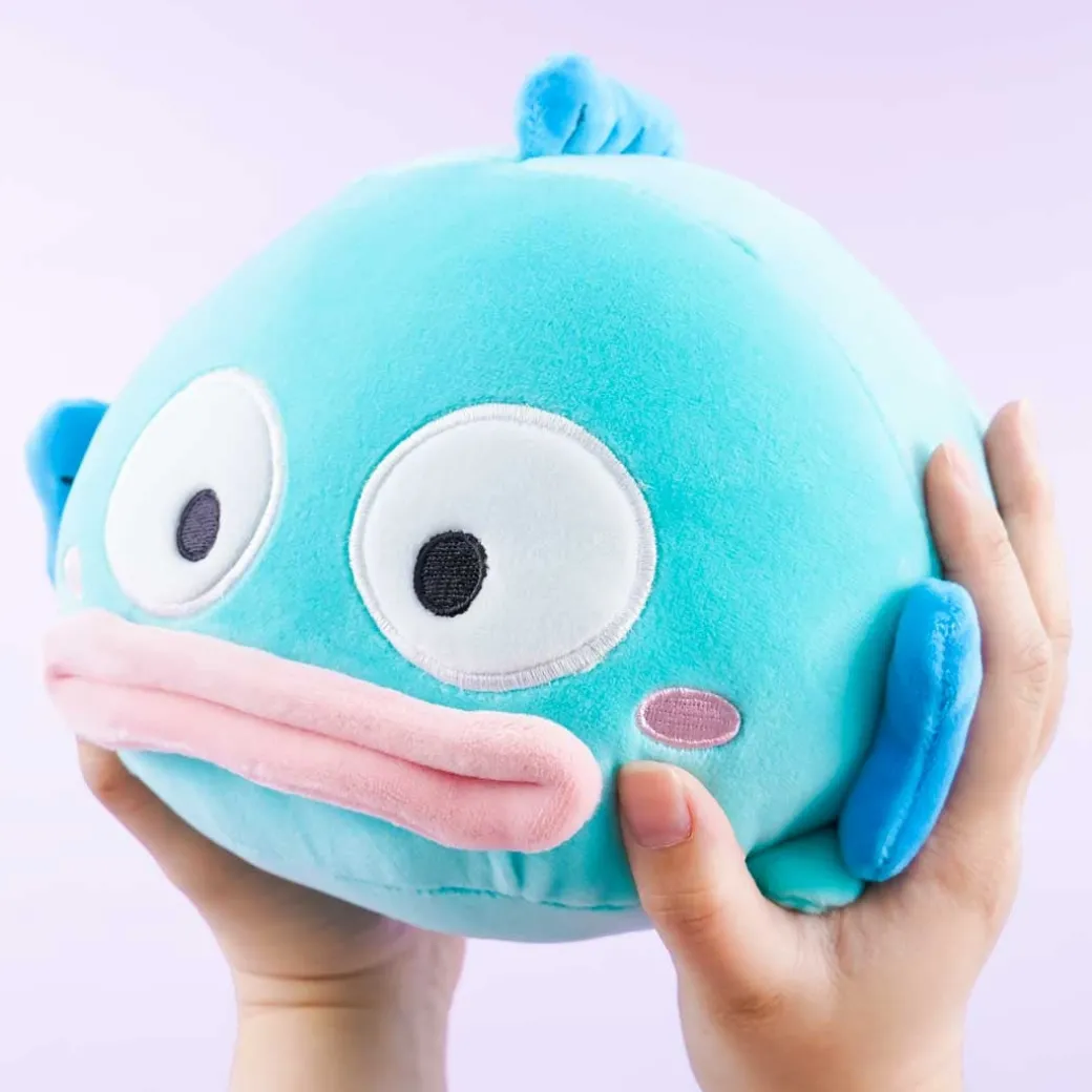 - A super cute medium-sized Hangyodon cushion plushie lying on its belly