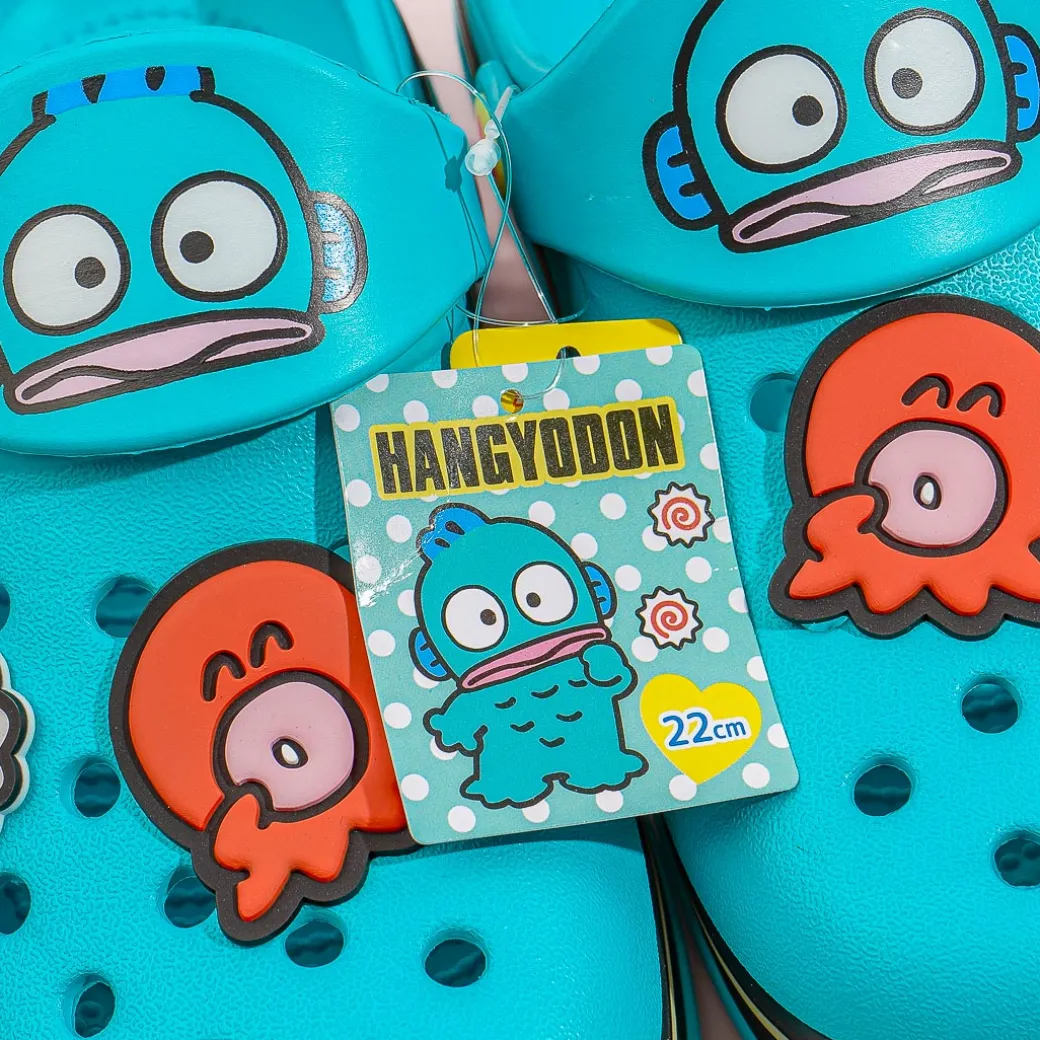 Slip on these comfy slippers to keep your feet warm even when indoors! This super cute blue-green pair has kawaii illustrations of Hangyodon and rubber charms of fish cake and Sayuri the octopus! These small-sized sandals are made from EVA — a special rubber-like resin material.
