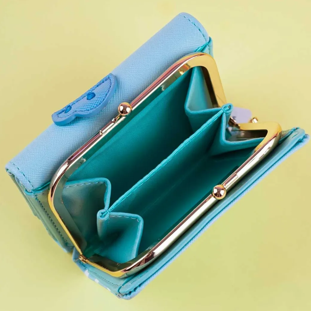 - A cute trifold wallet with a Hangyodon embroidered face design