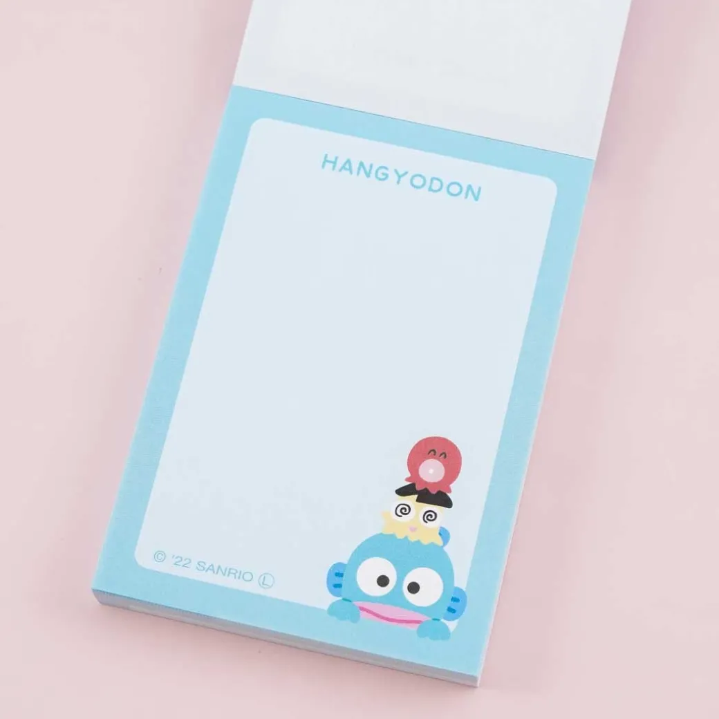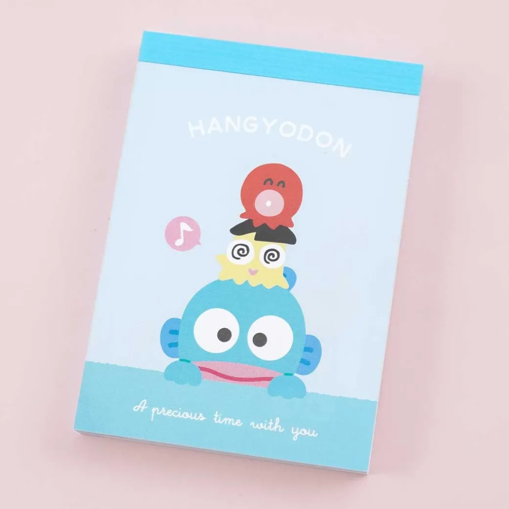 - A kawaii mini memo pad with prints of Hangyodon and friends in a stack