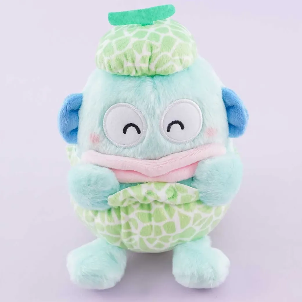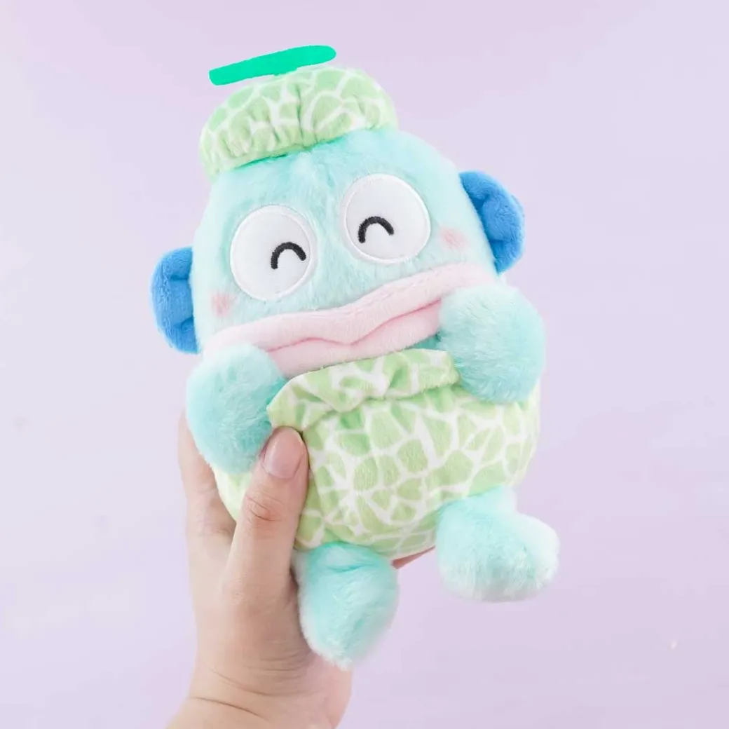 - A medium-sized happy Hangyodon plushie in a melon costume