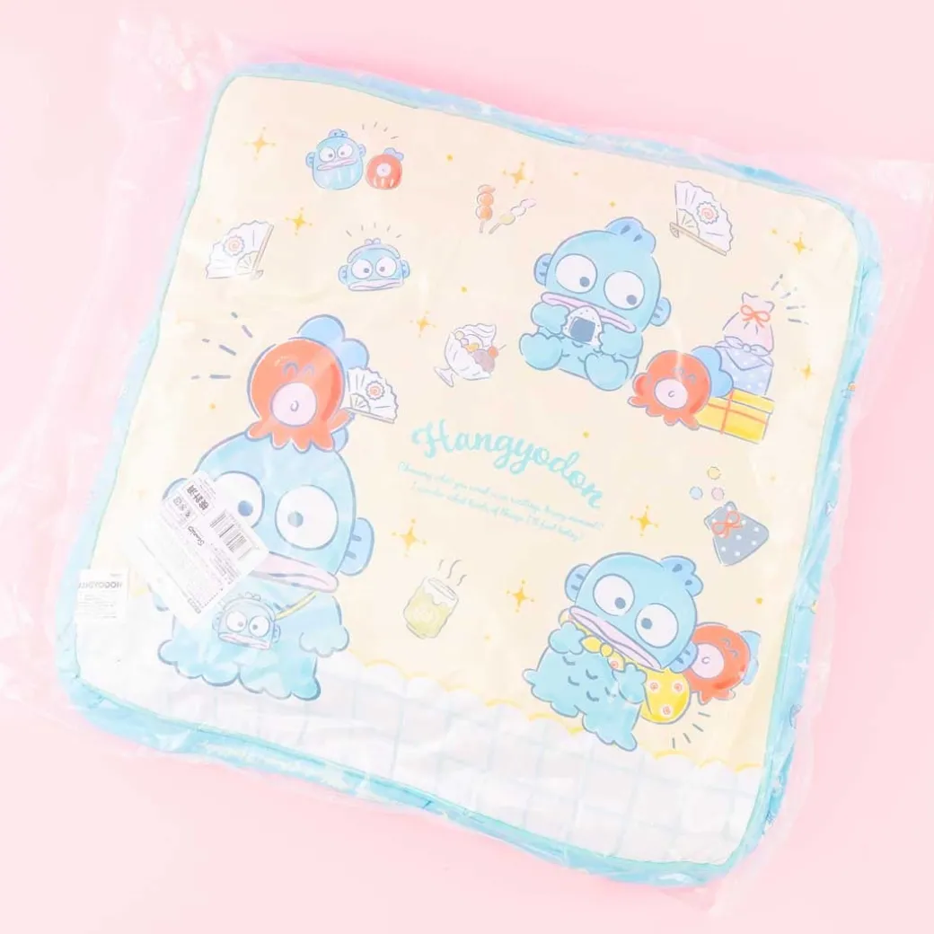 - A super cute square pillow featuring Hangyodon snacking with Sayuri