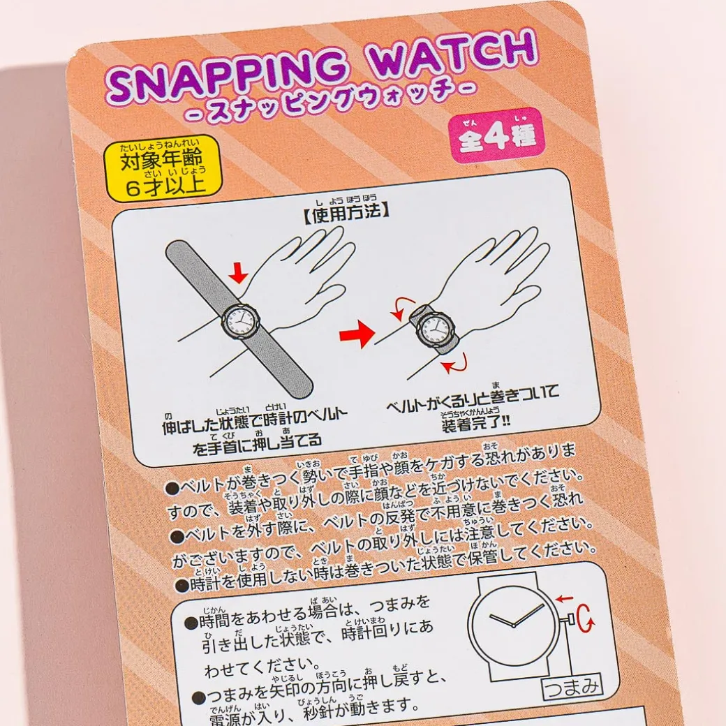 Add a dose of cuteness to your OOTD by wearing this super kawaii snapping watch! It has an illustration of Hangyodon holding a teapot, ready for afternoon tea! Just press the watch on your wrist and let it wrap around on its own.