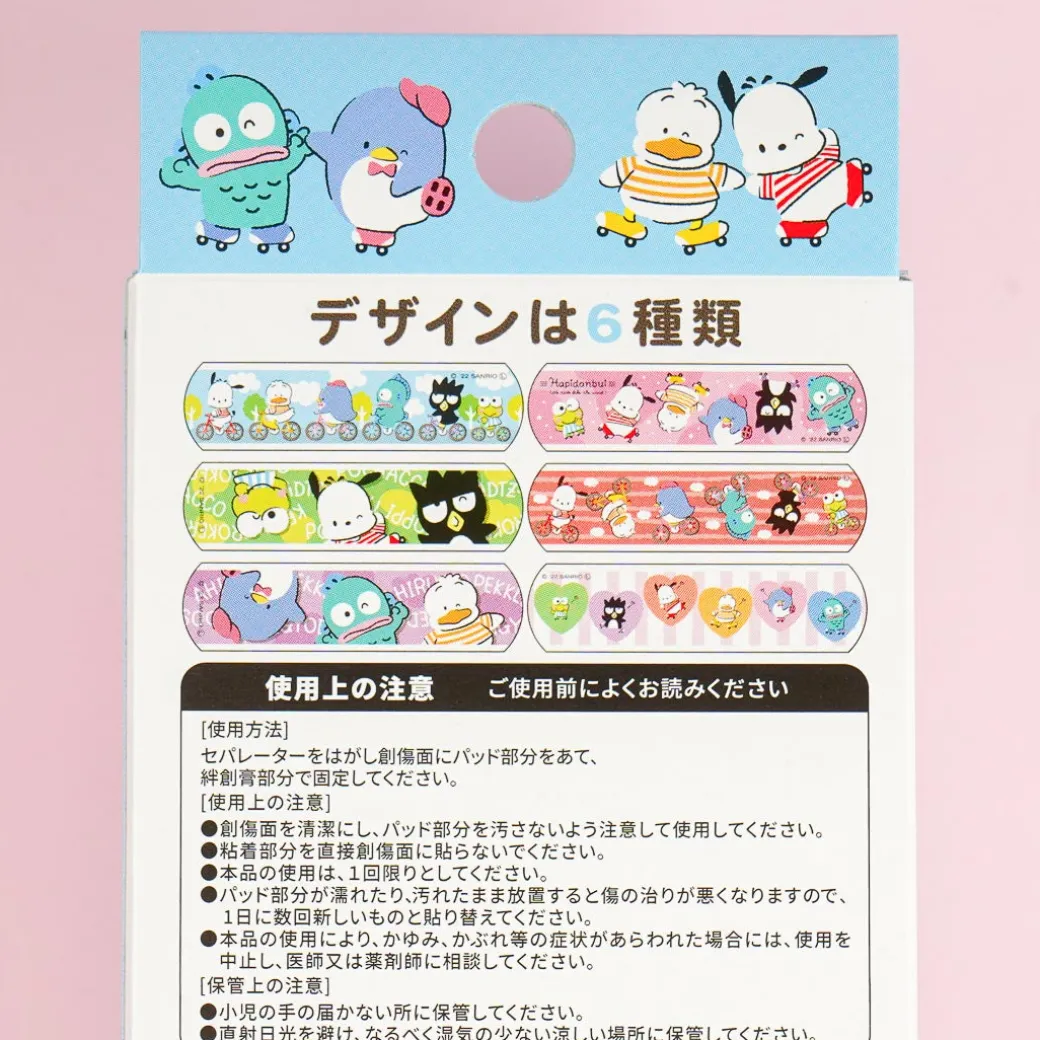 These kawaii bandages feature cute designs of the Hapidanbui cuties chilling together. Use them the next time you fall down while playing outside.