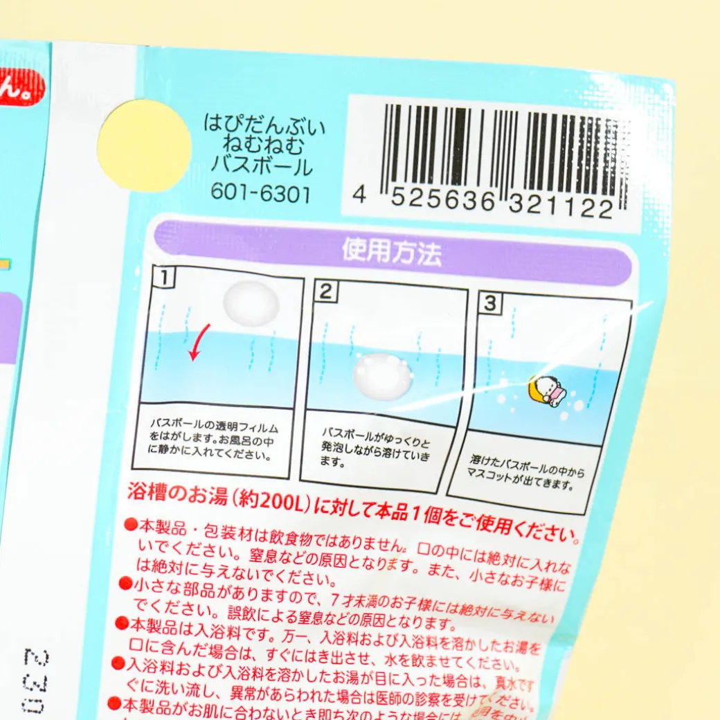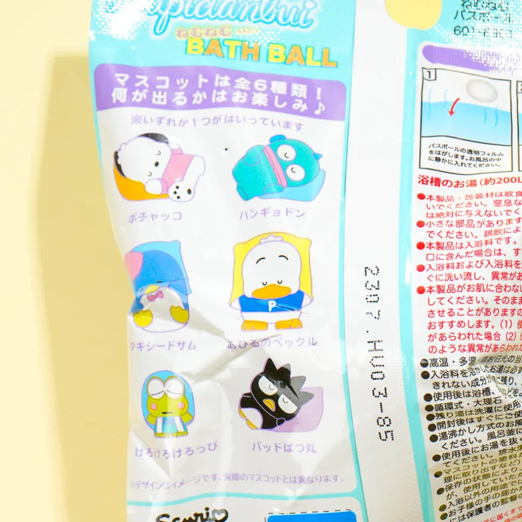Take this bath ball with you to the bath! A Hapidanbui cutie is going to come out of the bath ball once it dissolves in the water. Surprise yourself with a random member of the Hapidanbui! This bath ball has a lovely ramune (Japanese carbonated softdrink) scent.