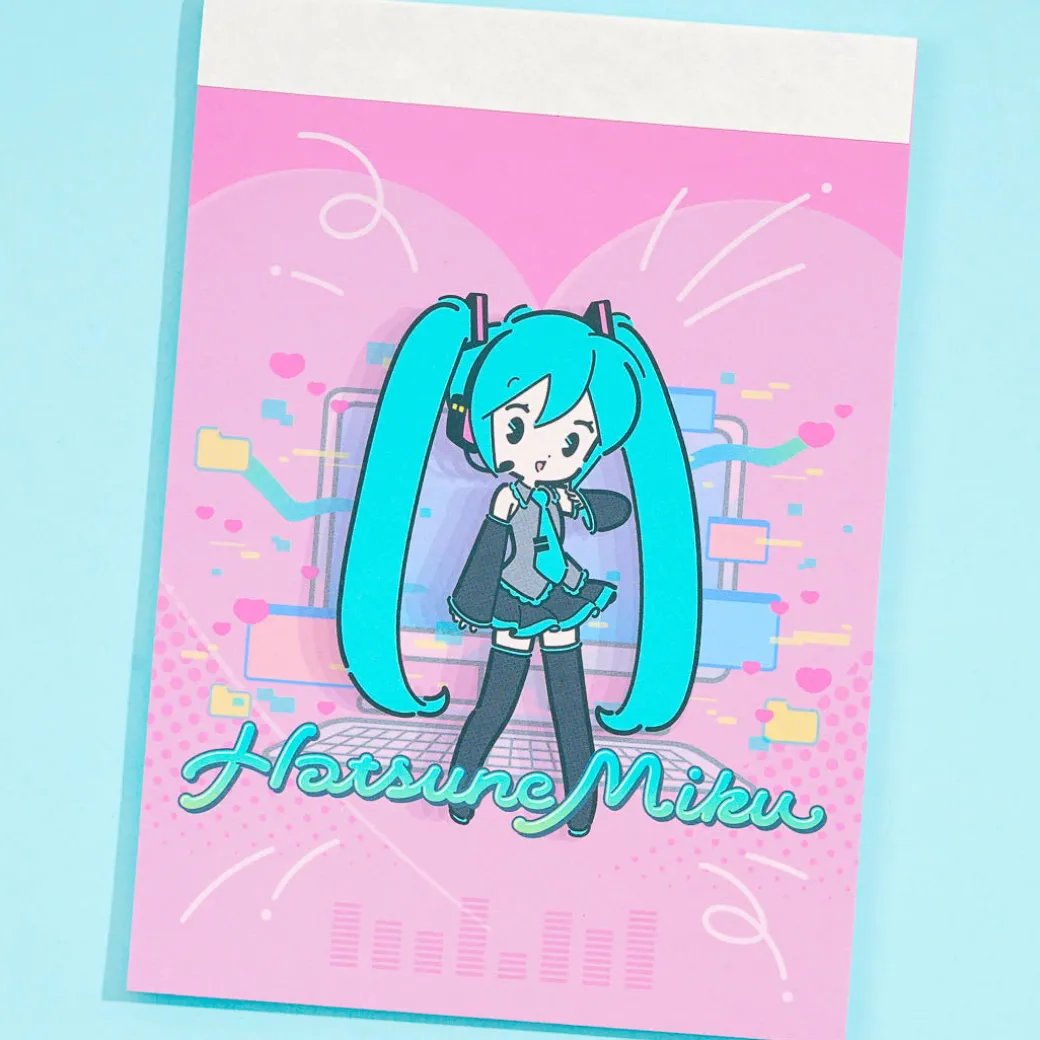 Use this super cute A6-sized memo pad to write down important notes and reminders. It features Hatsune Miku doing a cute dance! Some of the sheets also feature other Vocaloid characters.