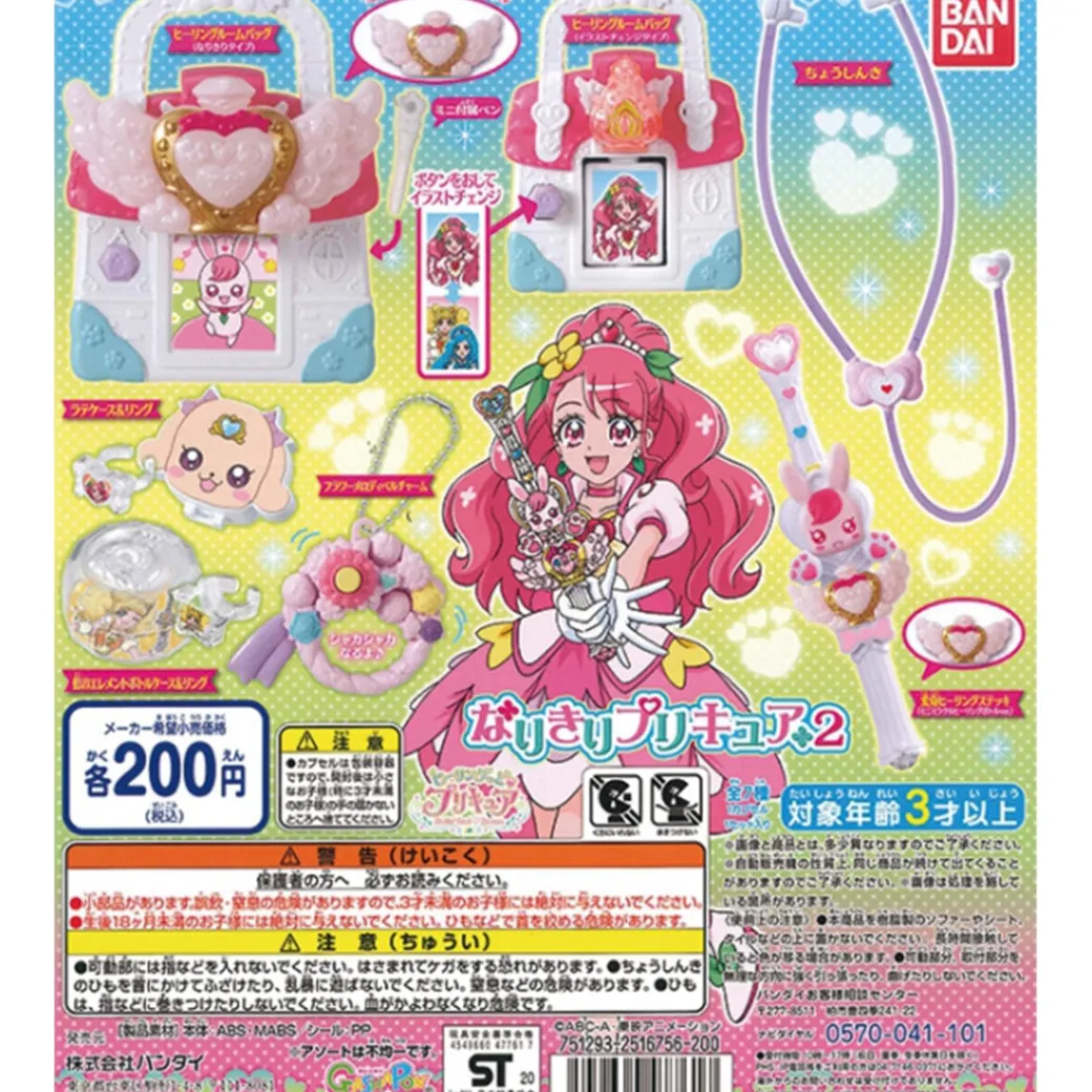 - Different designs available: Healing Room Bag – Narikiri Type, Healing Room Bag – Illustration Change Type, Transformation Healing Stick, Flower Melody Bell Charm, Choshinki, Rainbow Element Bottle Case and Ring; and Latte Case and Ring