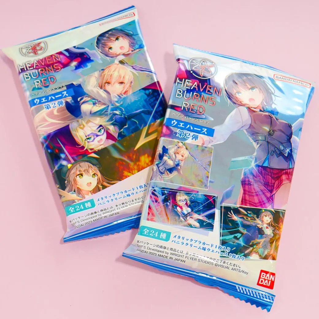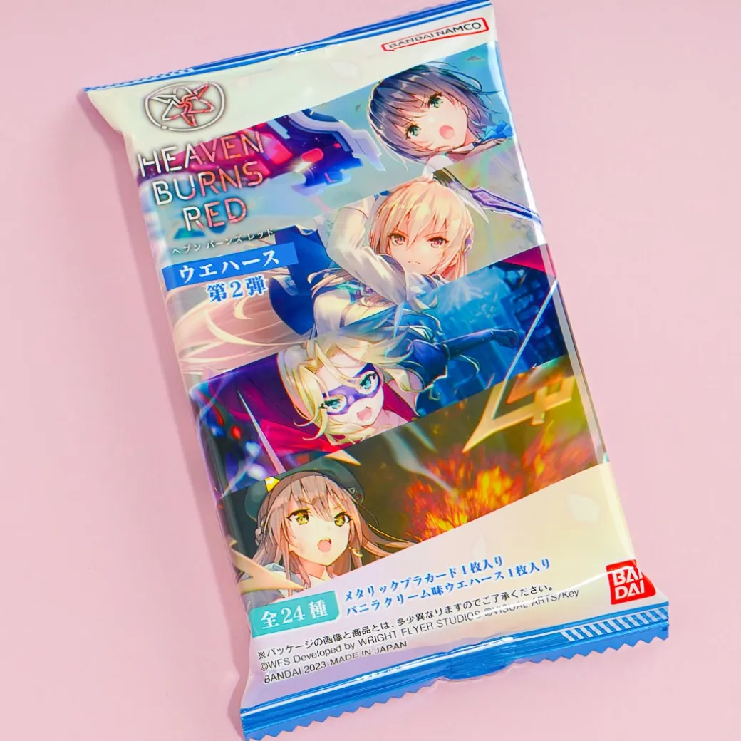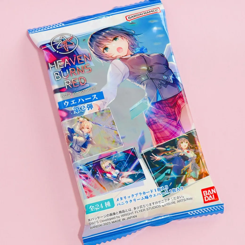 Snack on a sweet vanilla cream-flavored wafer and get a kawaii collectible card! The cute and shiny card features scene illustrations from Heaven Burns Red, a popular mobile action game.