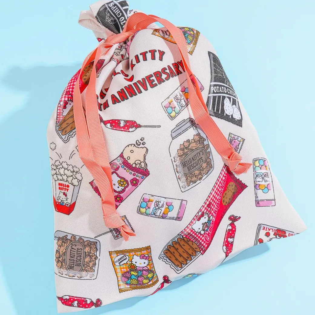 This kawaii drawstring pouch is covered in prints of Hello Kitty snacks, popcorn, and other goodies. It was made in celebration of Hello Kitty’s 45th anniversary. Use this big pouch to organize your makeup, towels, and other things that you need to travel!