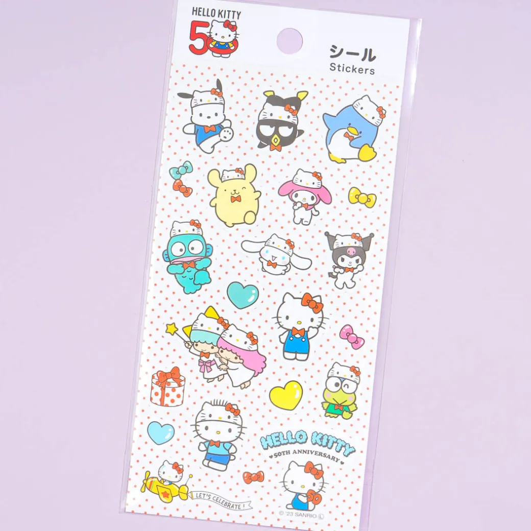 Add a dose of cuteness to your notebook and book covers with these die-cut stickers! The sheet features special prints of the Sanrio Characters wearing Hello Kitty hats while celebrating Hello Kitty’s birthday. These super cute seals are specially designed in celebration of Hello Kitty’s 50th anniversary!