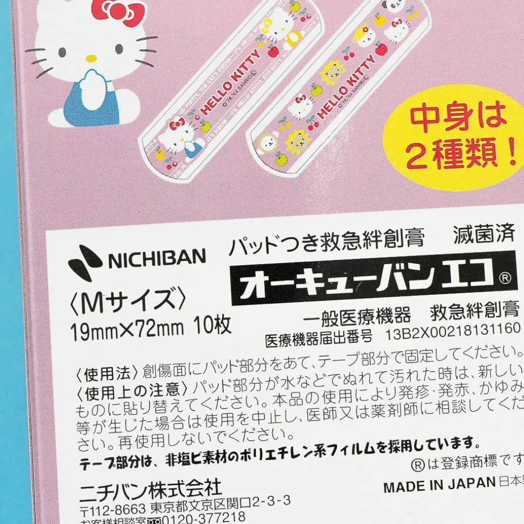 Make yourself feel better with these kawaii bandages! They feature cute prints of Hello Kitty in different colored outfits with lions and pandas.
