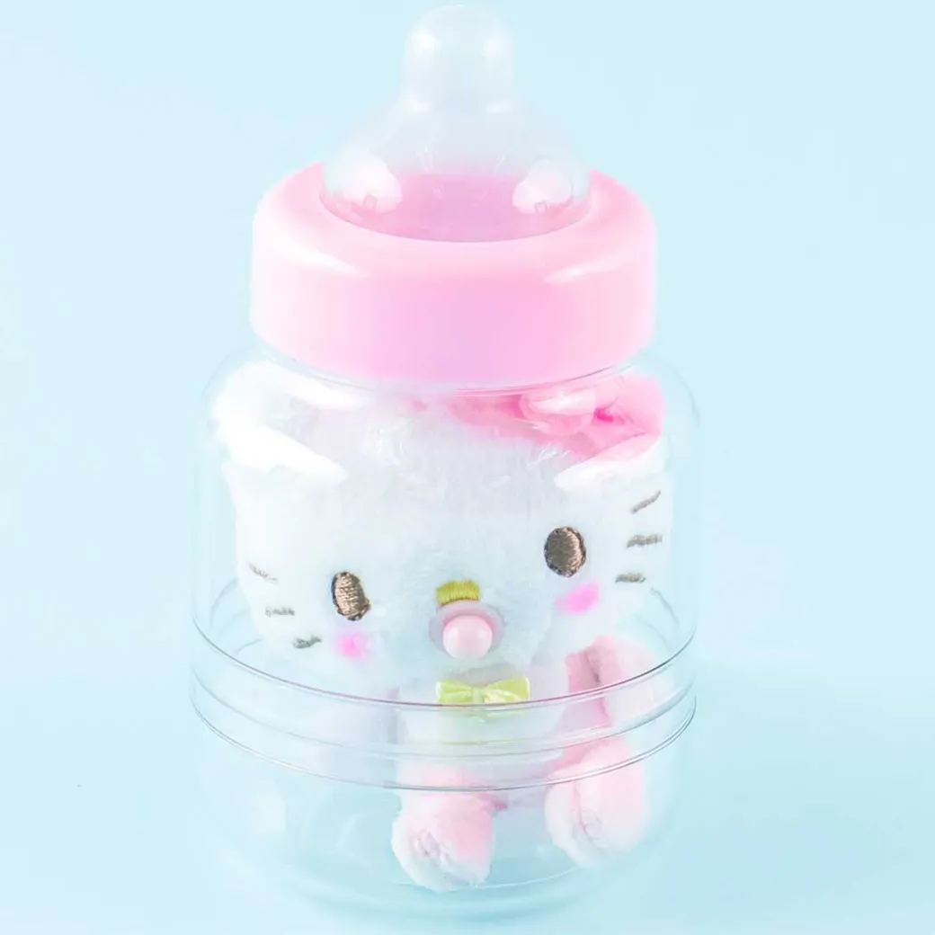 - A super cute medium-sized Hello Kitty baby plushie inside a baby bottle charm