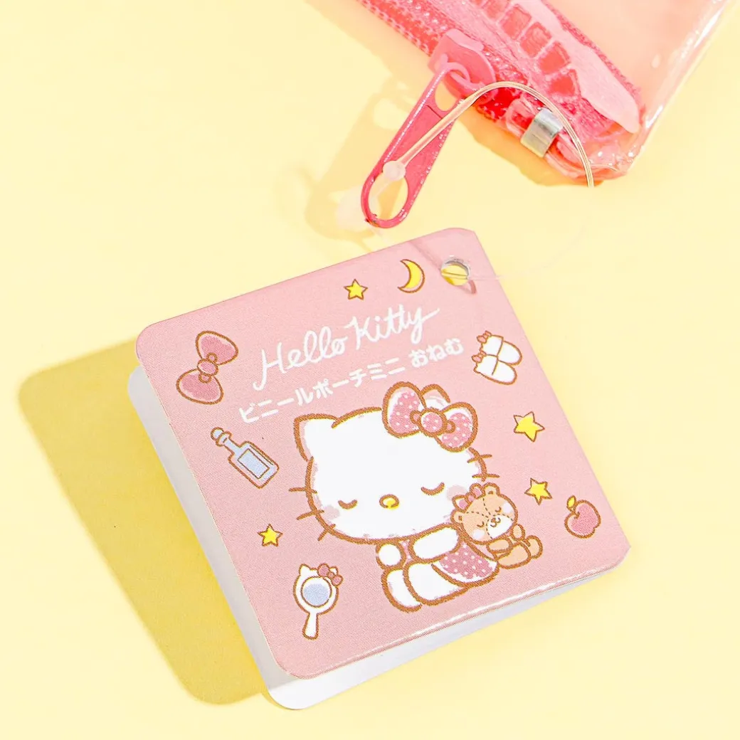 Keep your small accessories inside this super cute mini pouch! Its clear design showcases a print of Hello Kitty sleeping beside her best friend.