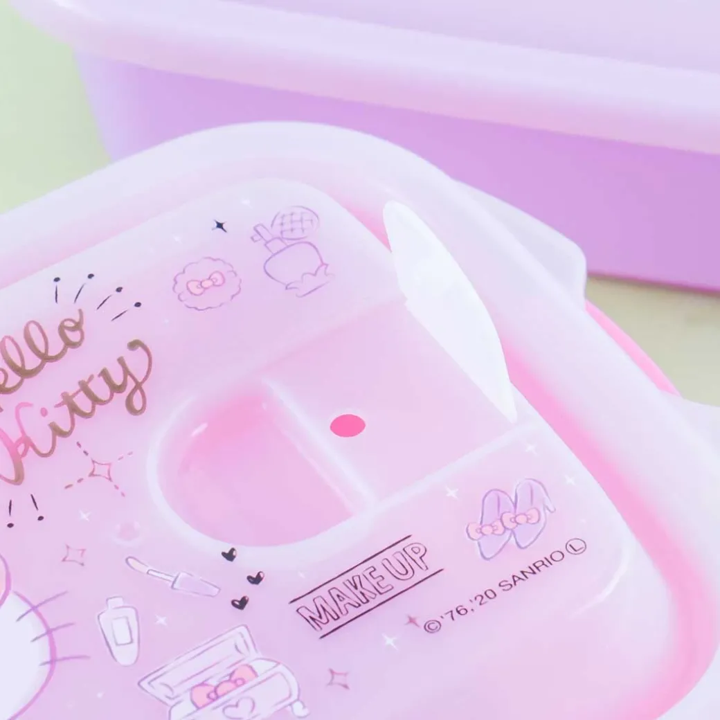 - A kawaii large bento box set illustrated with Hello Kitty and make-up