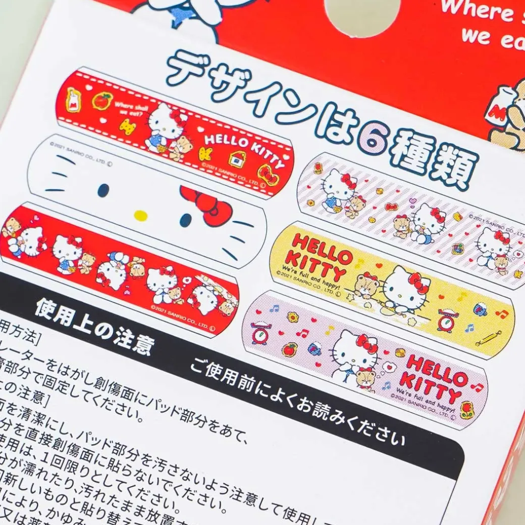 - A box of cute bandages illustrated with Hello Kitty playing with Tiny Chum