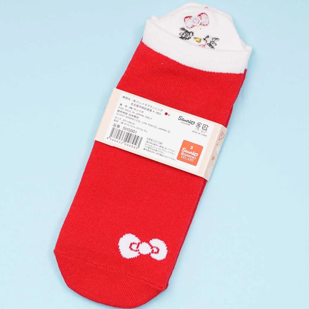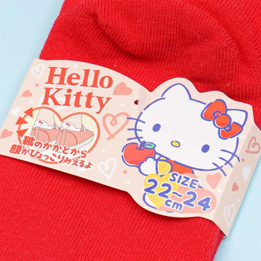 - A cute pair of heel socks with embroidery of Hello Kitty
