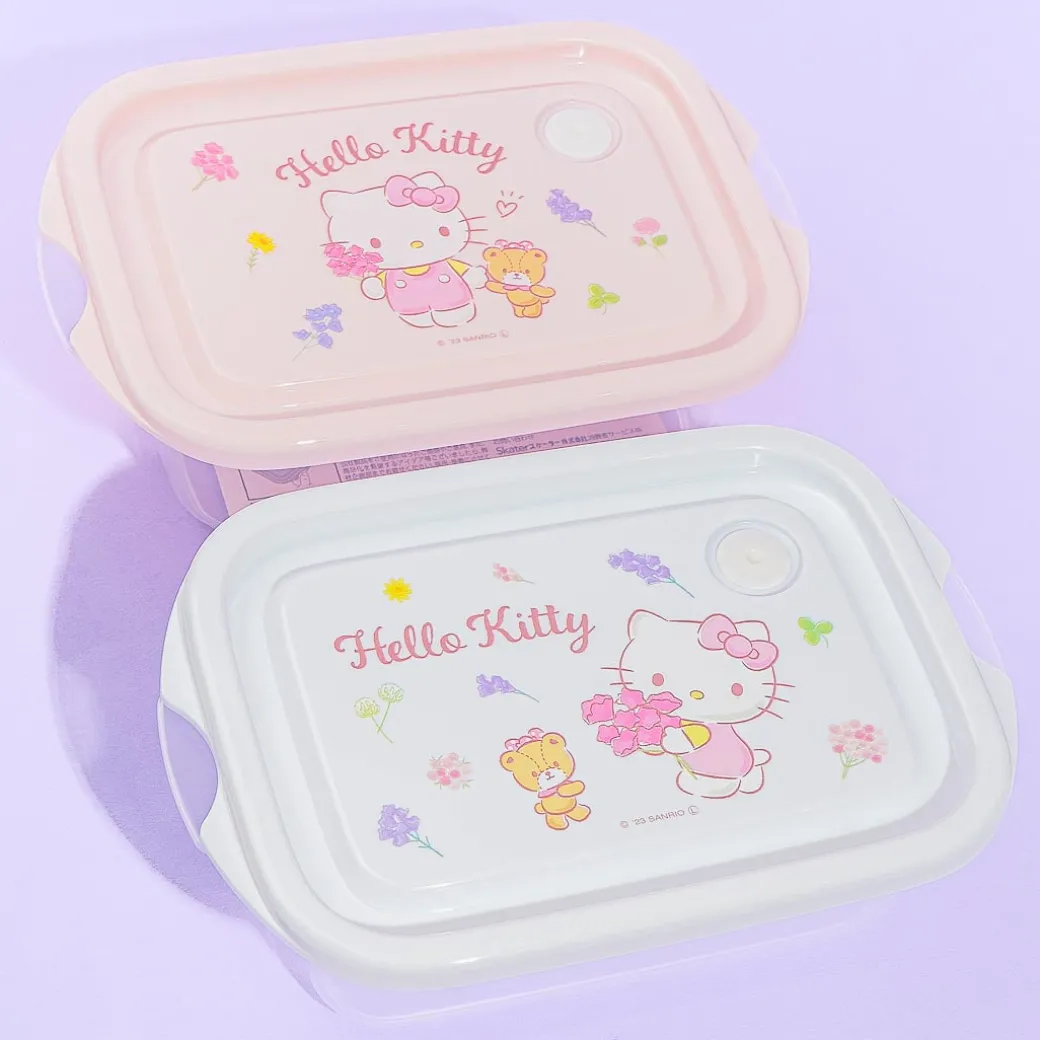 Keep your fave leftovers or side dishes inside these kawaii food containers! Each of the lids has an air vent and cute prints of Hello Kitty harvesting flowers with Tiny Chum! The stackable set is both microwave and dishwasher-safe.