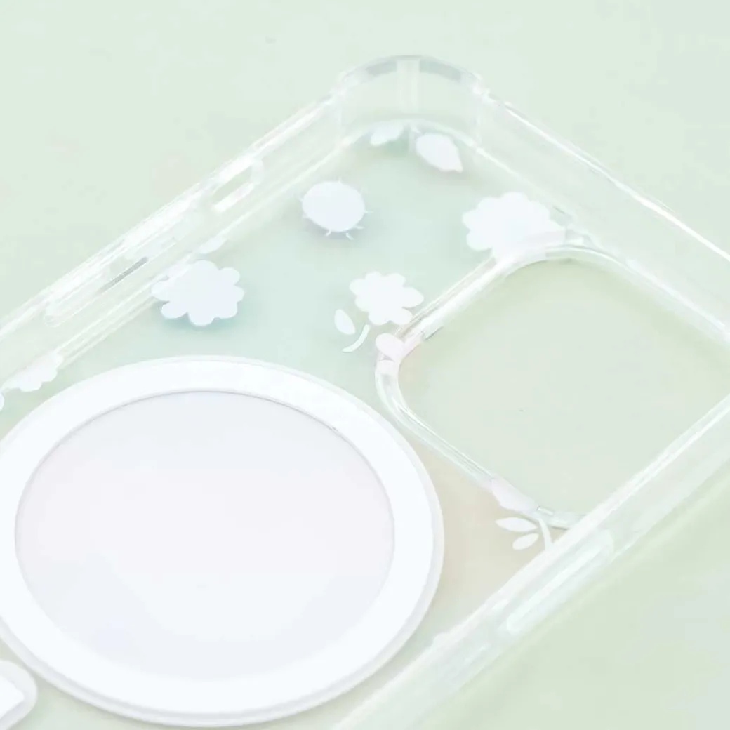 - A cute transparent MagSafe soft phone case for iPhone 13 Pro featuring prints of Hello Kitty, flowers, and lady bugs