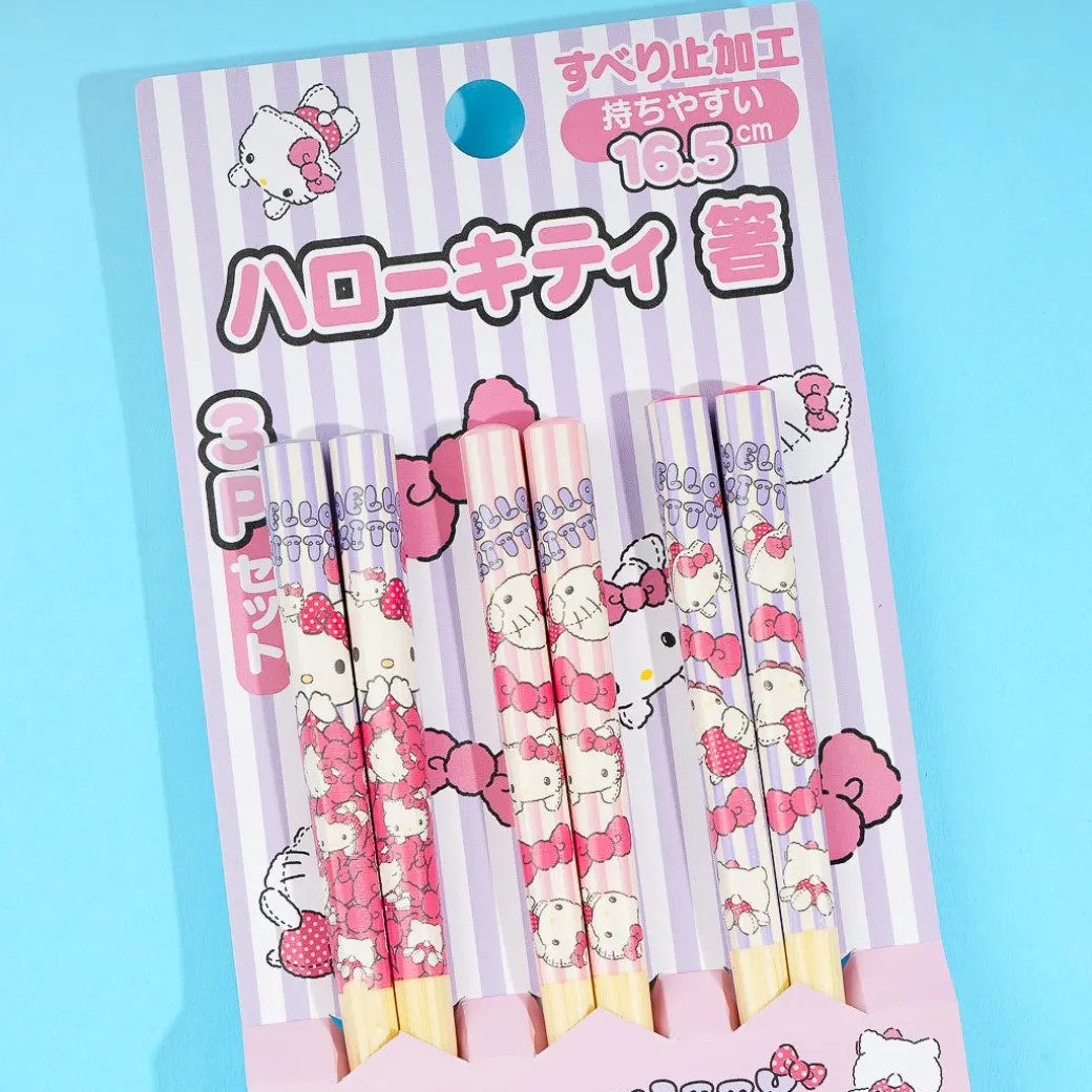Use this kawaii set of bamboo chopsticks for your next Sanrio-themed party! It showcases cute prints of Hello Kitty plush toys. The tip of the chopsticks are specially designed to prevent food from slipping.
