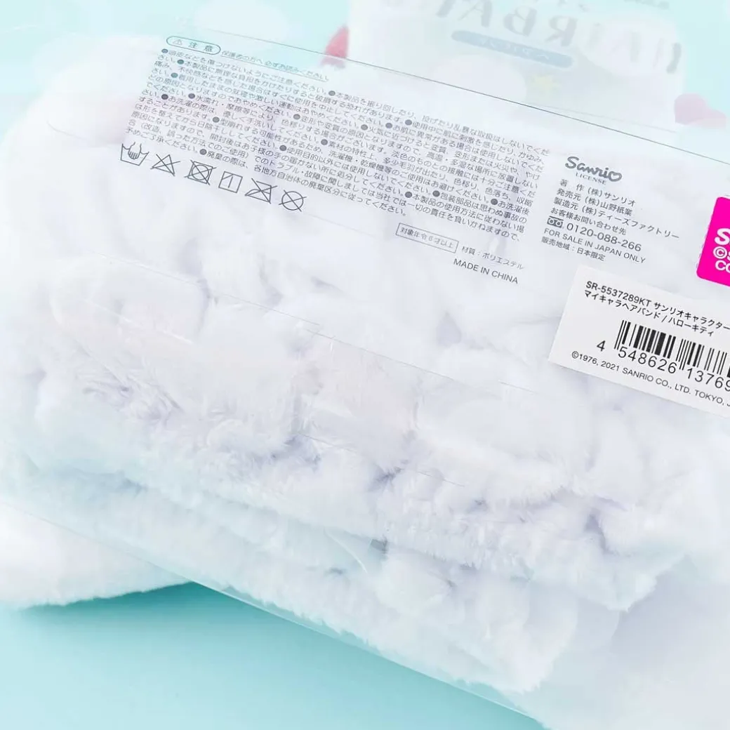 - A kawaii headband with a fluffy ribbon and a Hello Kitty decor
