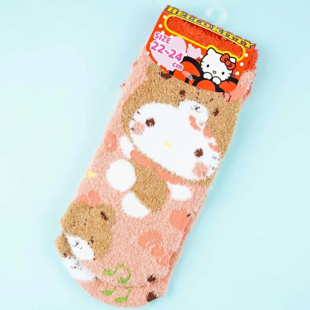 - A cute pair of soft polyester socks illustrated with prints of Hello Kitty