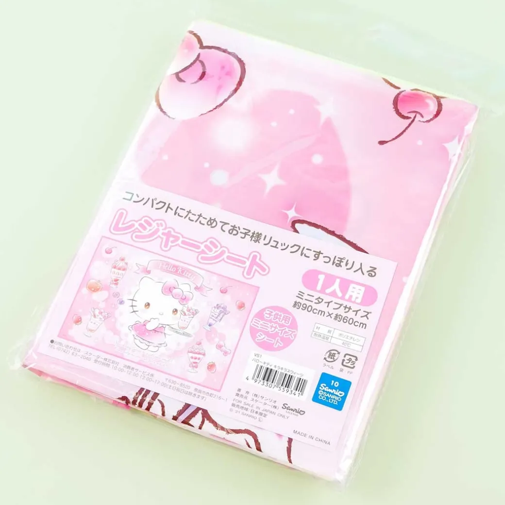 - A kawaii foldable picnic sheet featuring prints of Hello Kitty, ice cream sundaes, and fruits