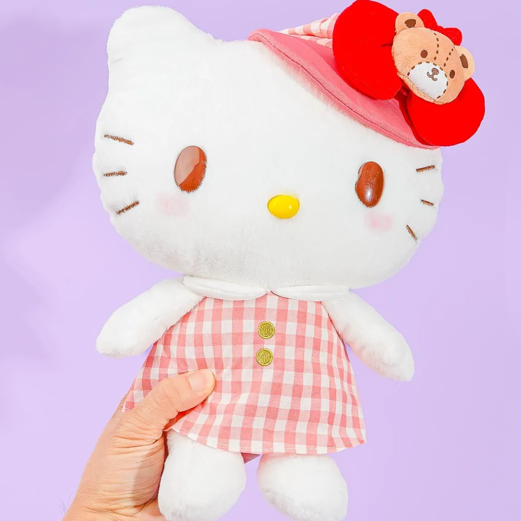 Hello Kitty Gingham Newsboy Cap Plushie – Medium