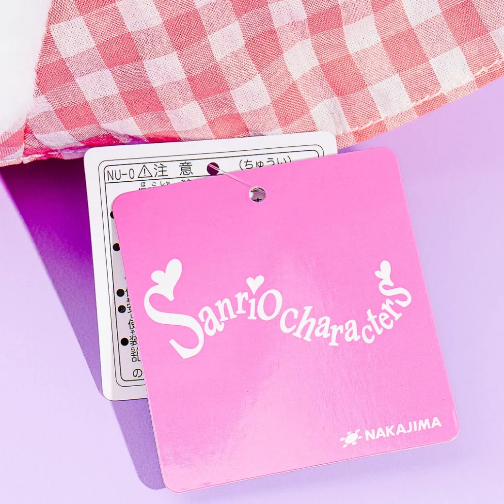 Add this super cute medium-sized plushie to your kawaii collection! Hello Kitty is wearing a gingham-patterned newsboy cap decorated with 3D Tiny Chum and a matching dress.