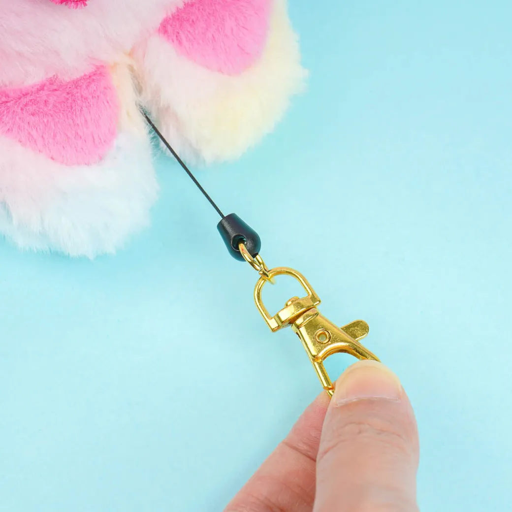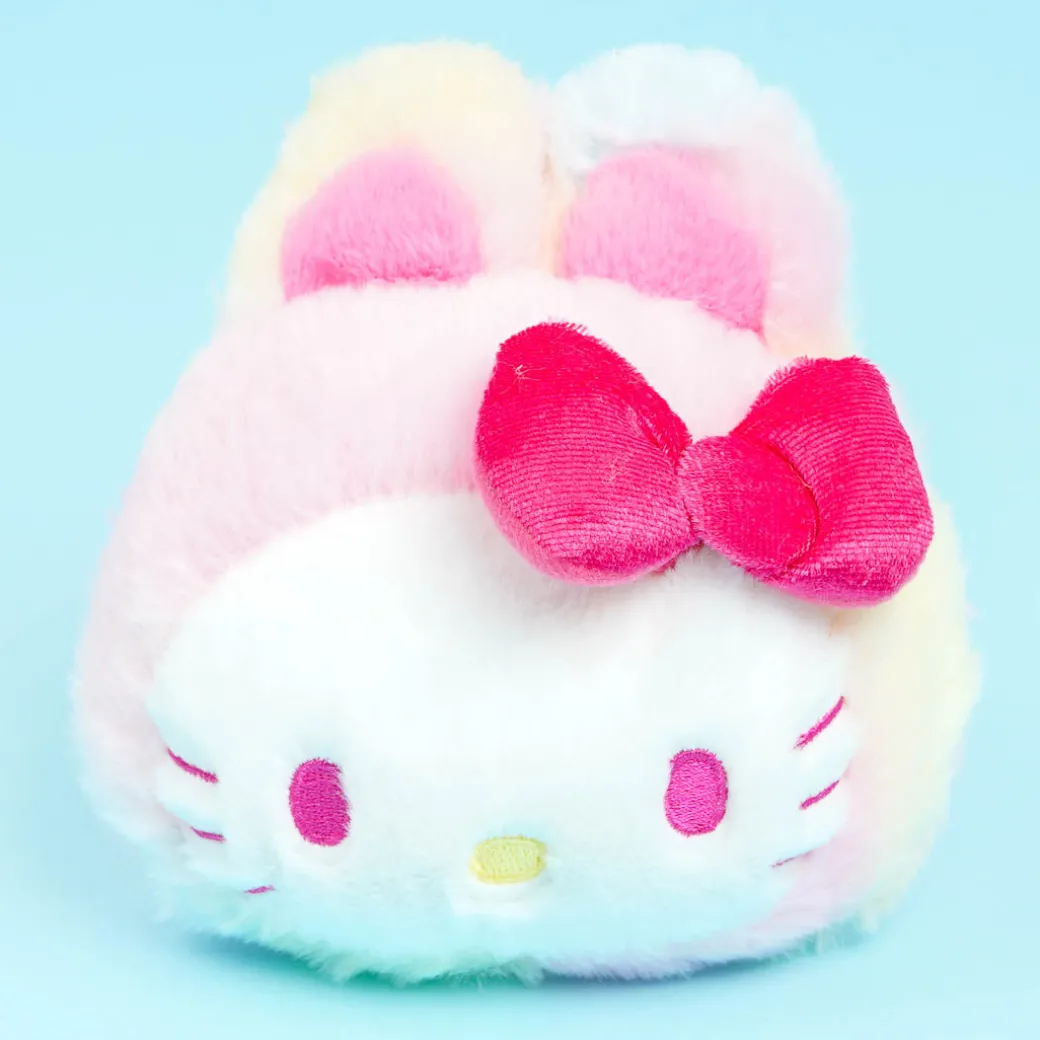 Use this fluffy Hello Kitty plushie card case to store your bus pass! This cute face plushie in a gradient rainbow-colored bunny onesie also comes with a metal hook that has a pull-out reel. Attach this plushie charm to your favorite tote bag!