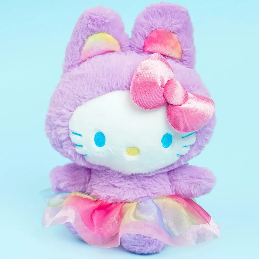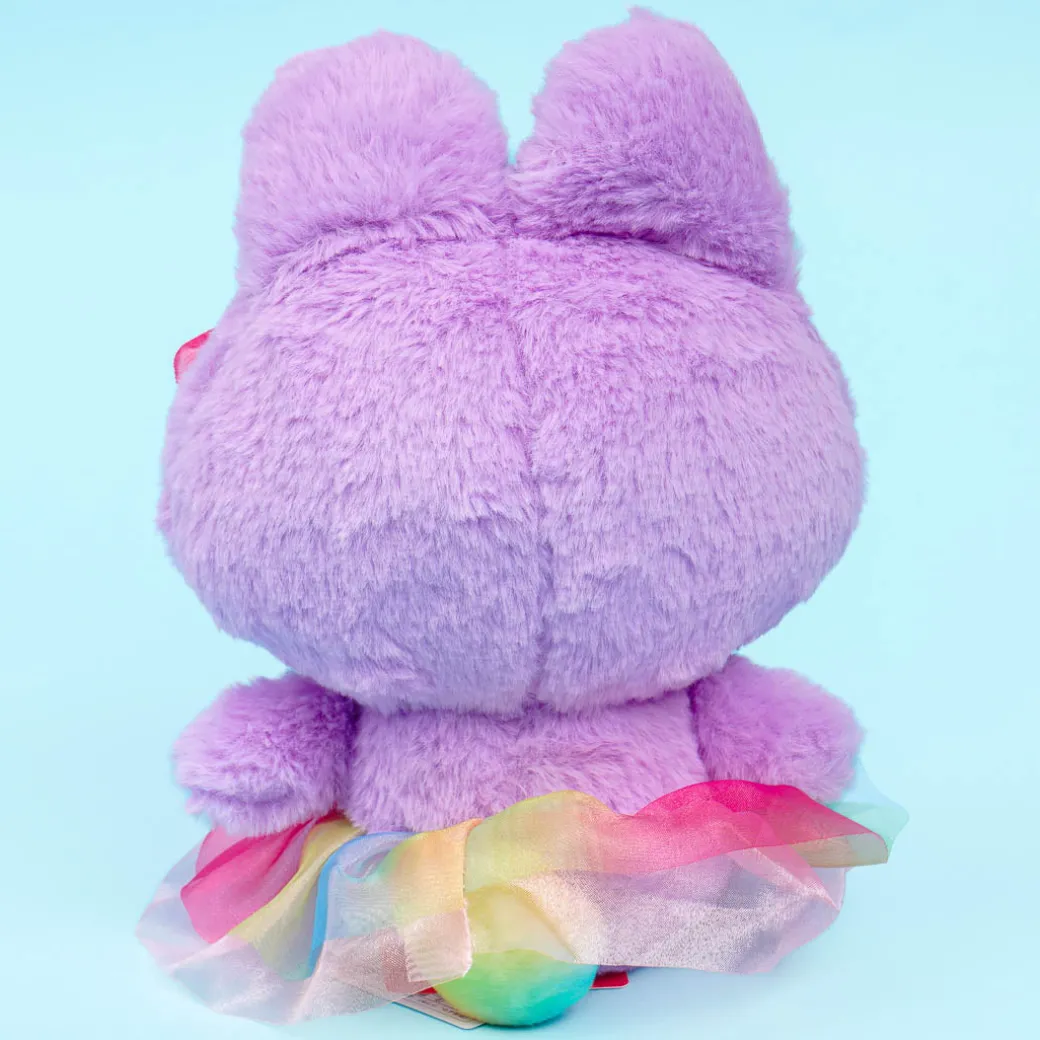 Sleep soundly as you hug this kawaii Hello Kitty plushie tightly! It’s wearing a purple bunny onesie with special gradient rainbow-colored ears and a tutu skirt! Add this fluffy medium-sized cutie to your growing plush toy collection!