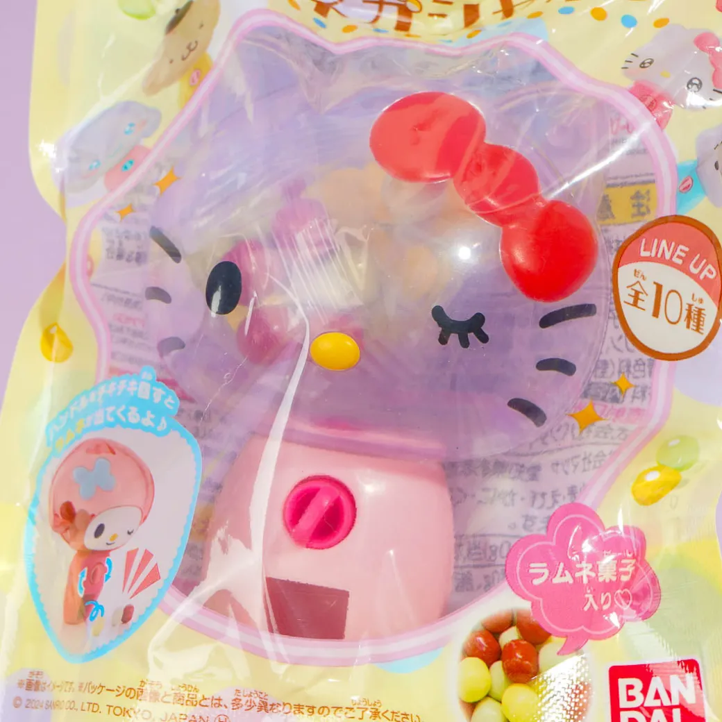 Add this cute Hello Kitty gumball machine toy to your collection. It comes with a pack of ramune candy that you can place inside to play with! Ramune is a Japanese carbonated soft-drink. Now you can have a taste of ramune with the candy!