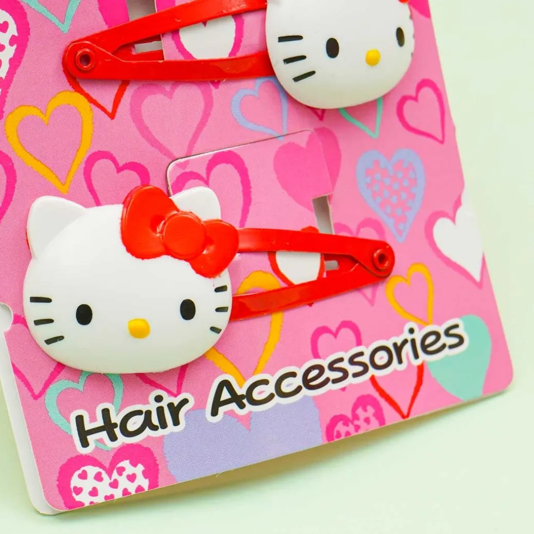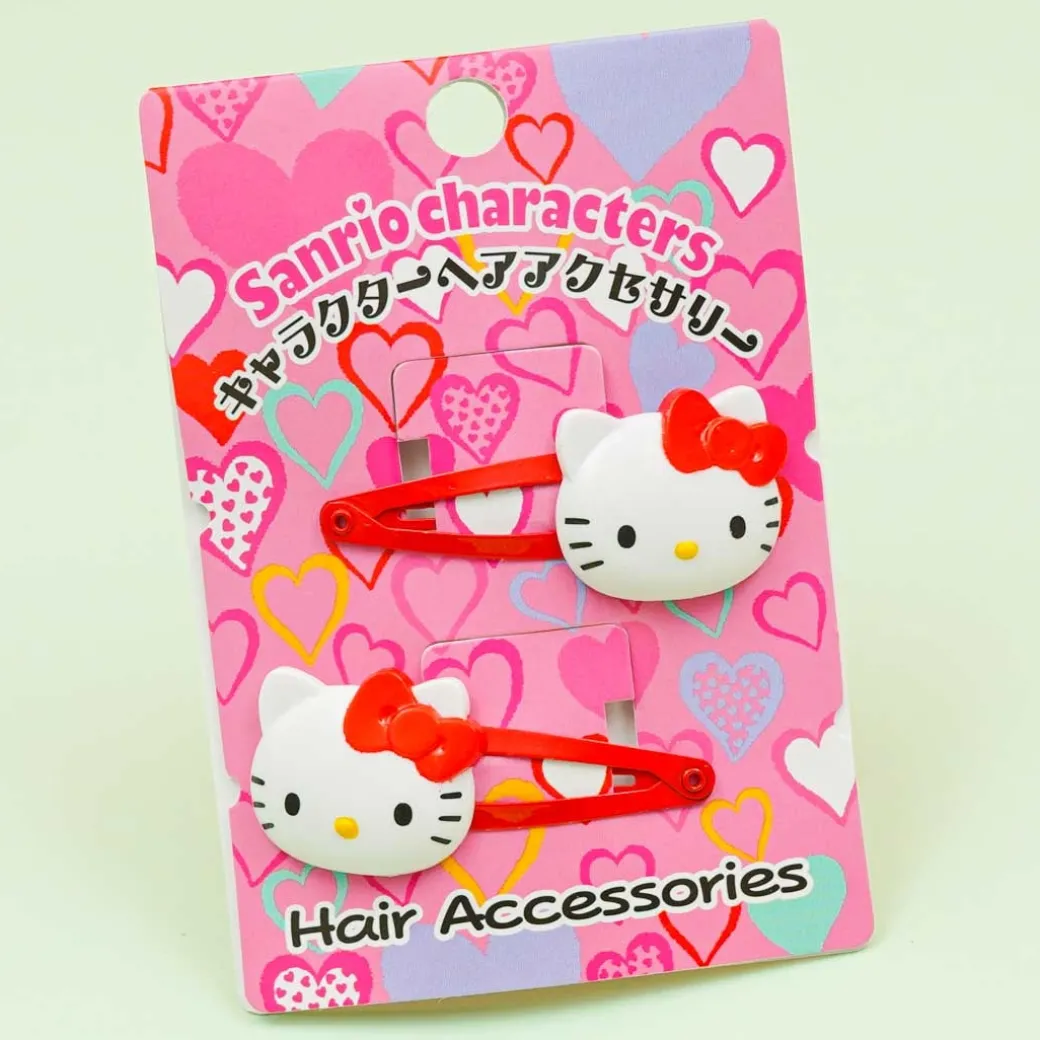 - A super cute set of hair pins featuring Hello Kitty head charms