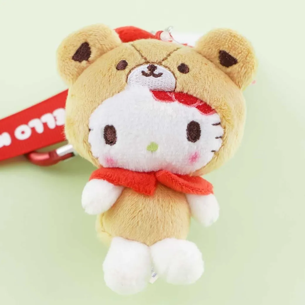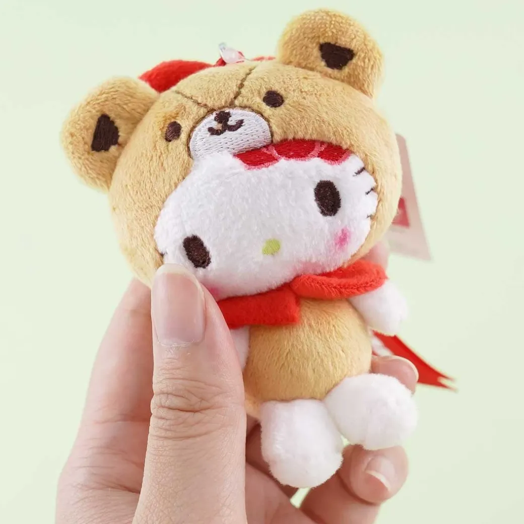 - A super kawaii Hello Kitty plushie bag charm wearing a cute bear onesie